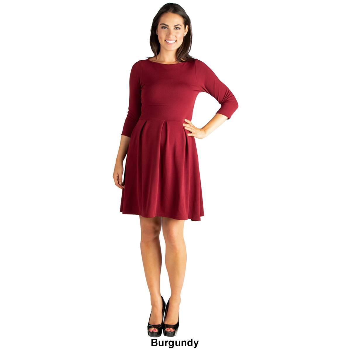 Description This Plus Size 24/7 Comfort Apparel maternity dress features a classic cut with boat neckline and fitted 3/4 length sleeves. Comfy fit and flare silhouette flares...