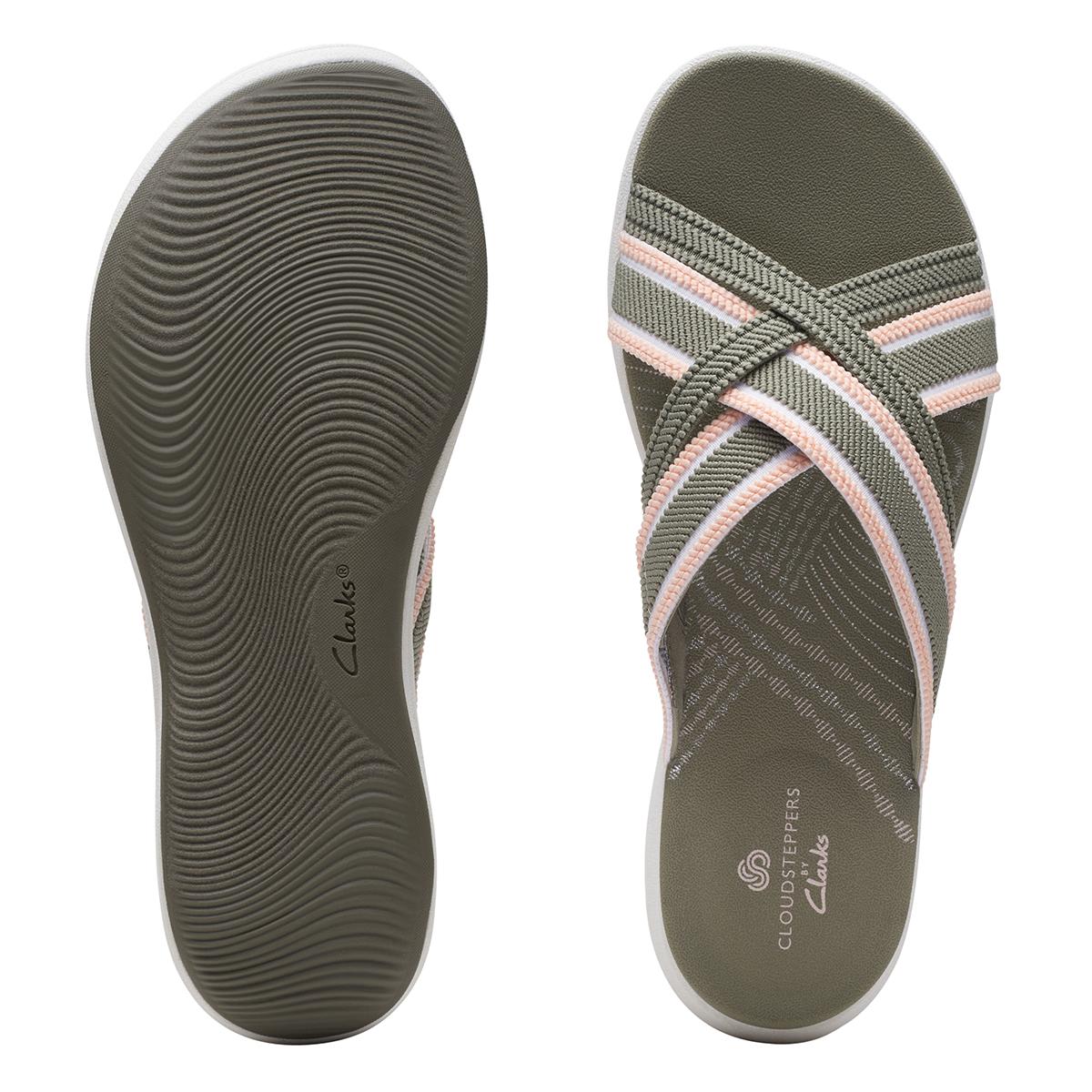 Description The Womens Clarks® Cloudsteppers™ Mira Isle slide sandals are simple and easy to wear, while color pops spark interest and make this wearable sandal even more fun....