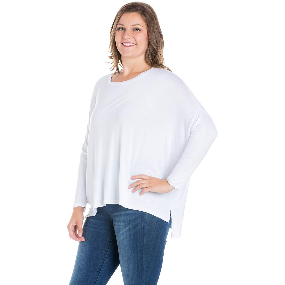 Description Our laid back Plus Size 24/7 Comfort Apparel dolman long sleeve top features an oversized silhouette that is easy to wear. This top has a round neckline, split...