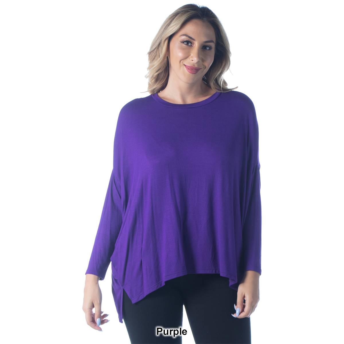 Our laid back Plus Size 24/7 Comfort Apparel dolman long sleeve top features an oversized silhouette that is easy to wear. This top has a round neckline, split hemline, a loose boxy fit and is made from a stretchy lightweight material in six solid colors.