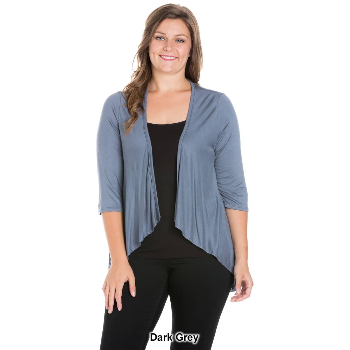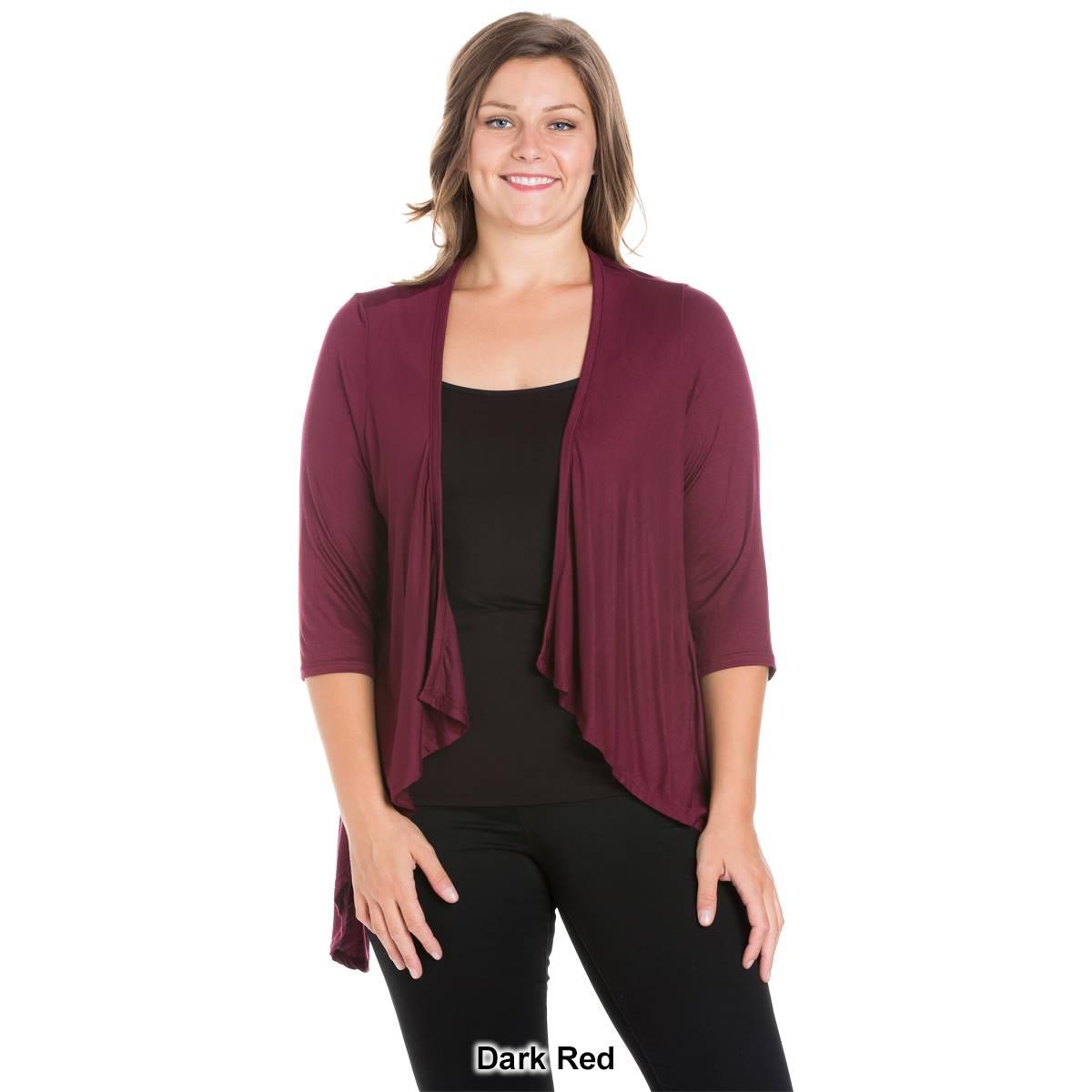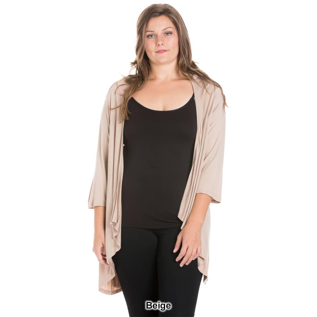 Create a stylish layered look with this Plus Size 24/7 Comfort Apparel open-front cardigan. It features a cascading front shape, elbow length sleeves, and a loose comfortable shape that is available in 8 beautiful solid colors. The perfect way to complete any look!