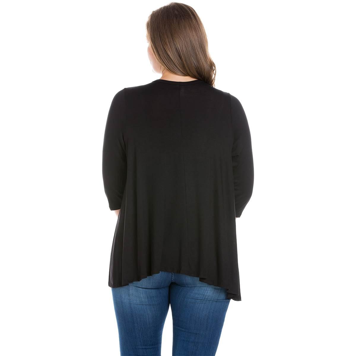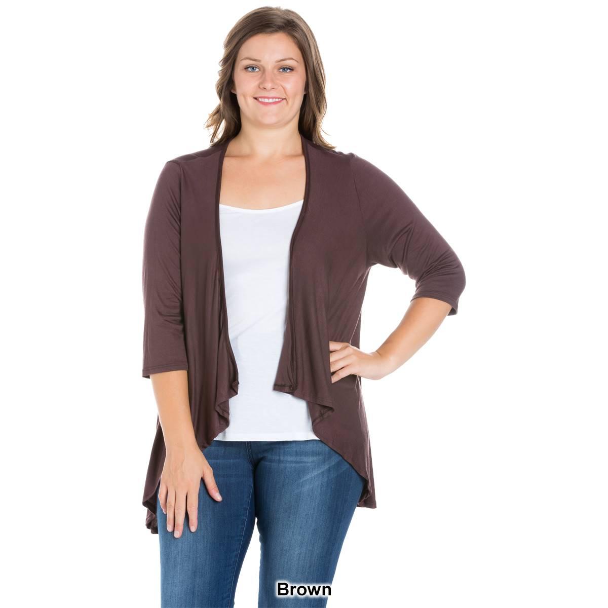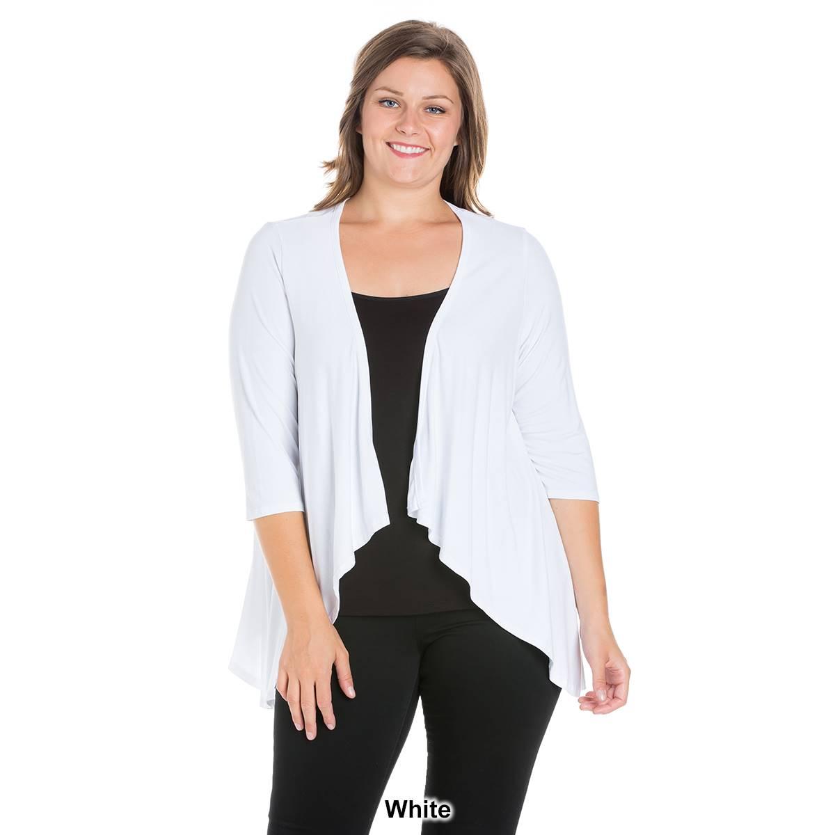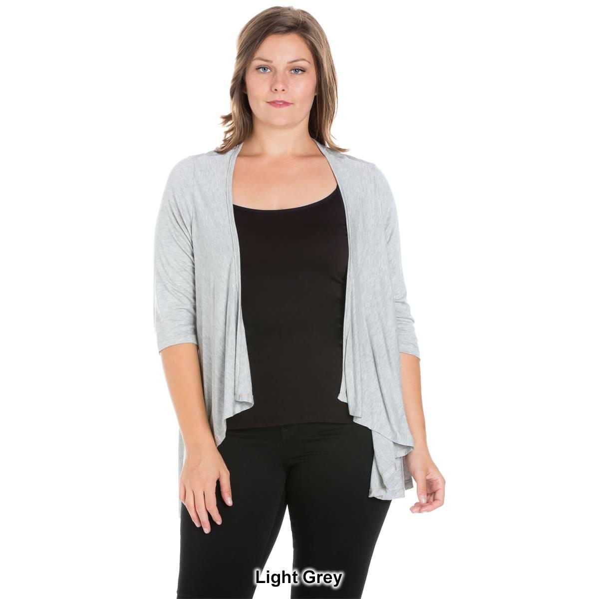 Create a stylish layered look with this Plus Size 24/7 Comfort Apparel open-front cardigan. It features a cascading front shape, elbow length sleeves, and a loose comfortable shape that is available in 8 beautiful solid colors. The perfect way to complete any look!