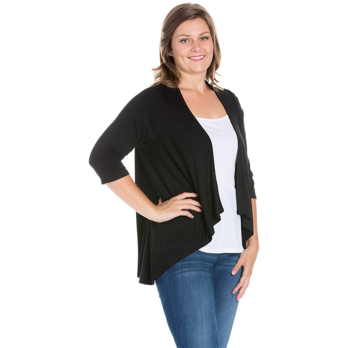 Description Create a stylish layered look with this Plus Size 24/7 Comfort Apparel open-front cardigan. It features a cascading front shape, elbow length sleeves, and a loose...
