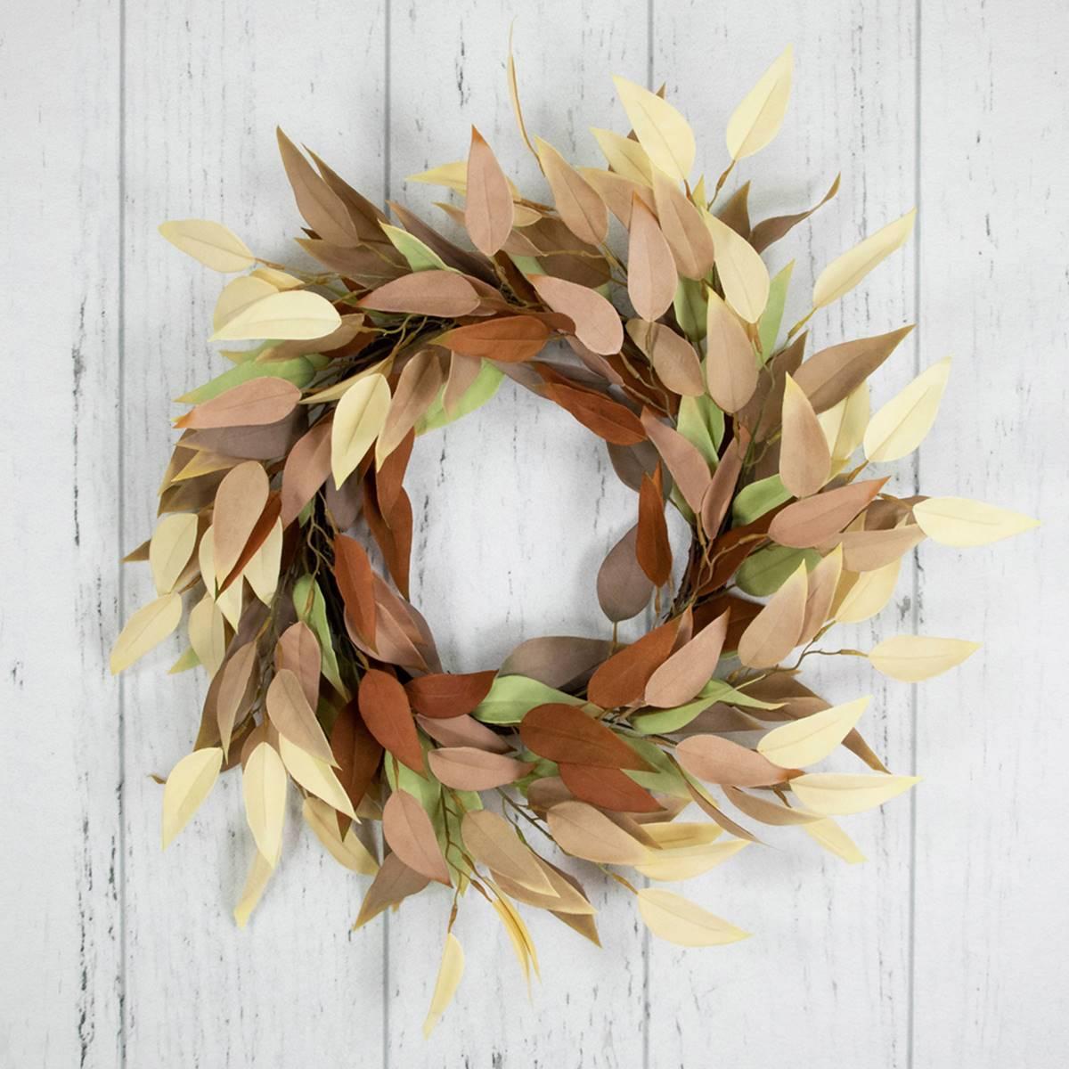 Description Bring the Autumn season indoors with this Northlight Seasonal 22-inch Neutral Fall Colored Leaves Wreath. It features muted orange, yellow, pink, and green colored...
