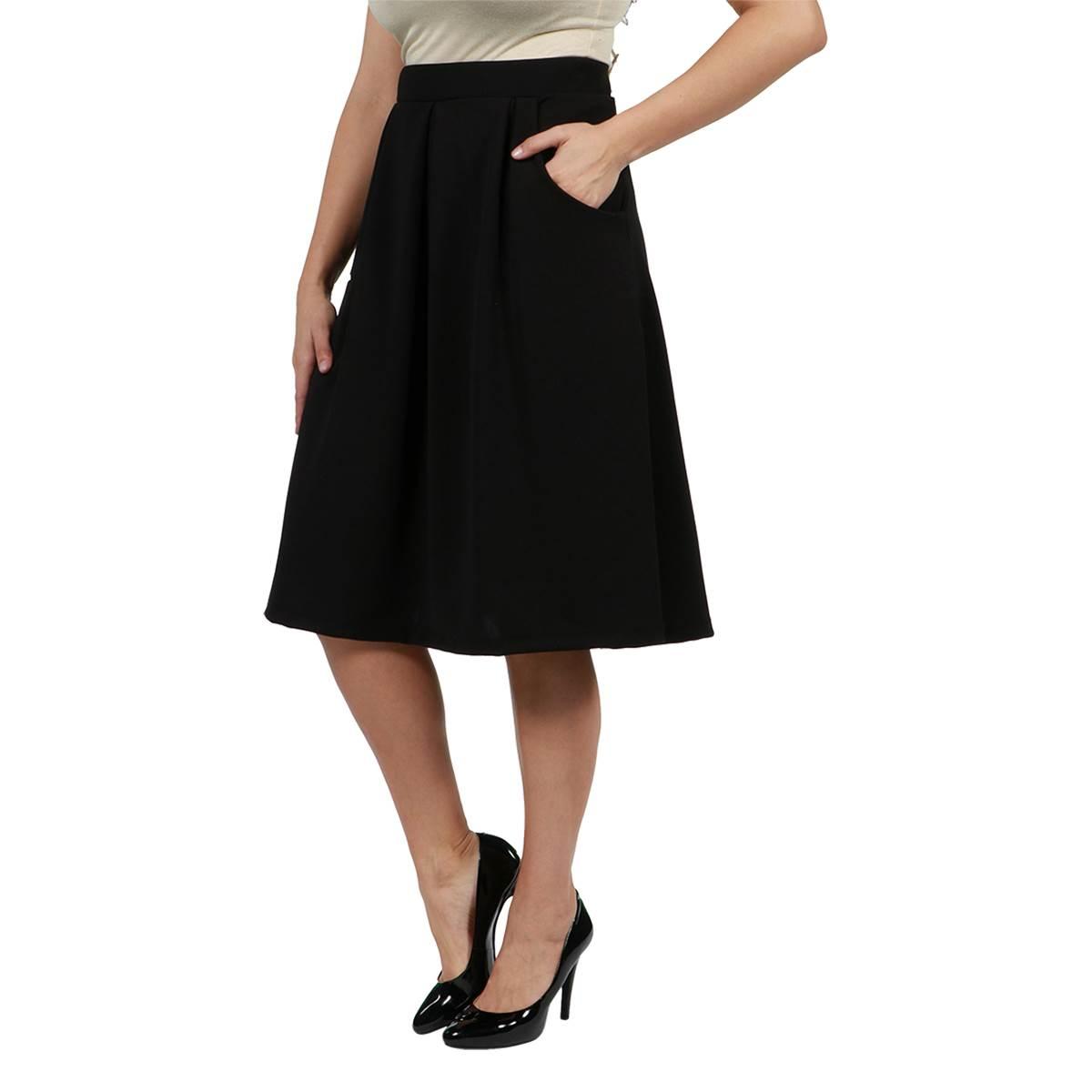 Description This classic Plus Size 24/7 Comfort Apparel skirt is a wardrobe must have. Featuring knee length design that has an elastic waist, pockets, pleating, and a...