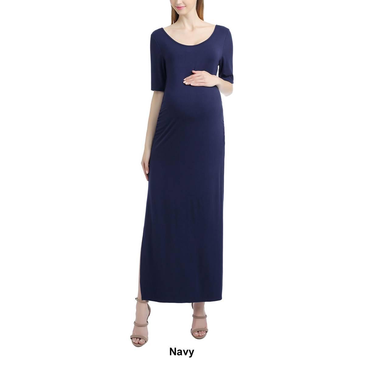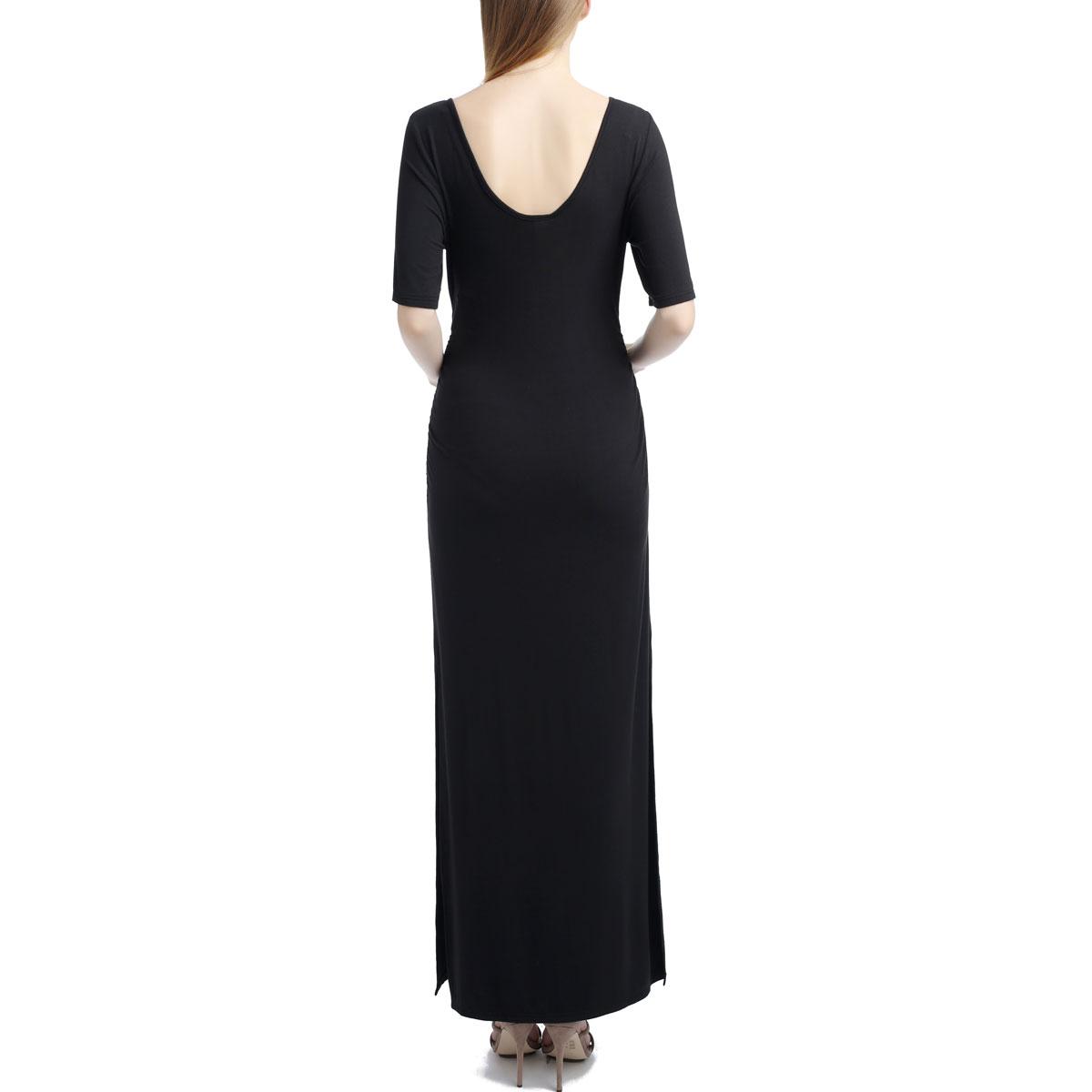 Description This Womens Glow & Grow® maternity maxi dress can take you from season to season. The classic belly ruching allows for plenty of belly growth, the deep back neck...