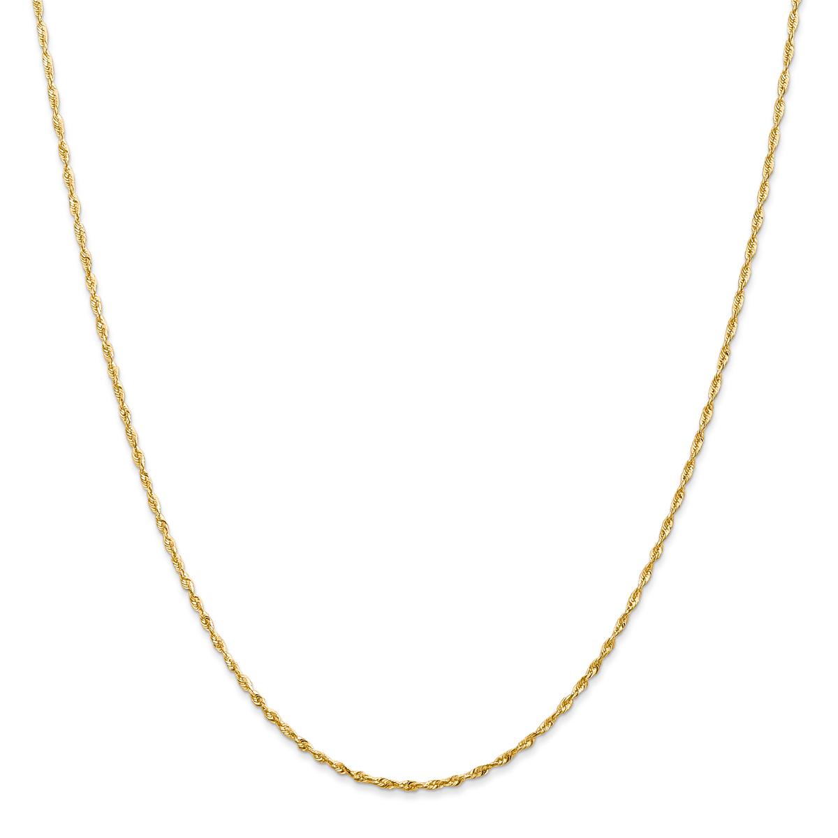 Catch attention with this wonderful Gold Classics™ extra light rope chain anklet. Crafted in warm 14 kt. yellow gold, the 1.5mm wide ankle bracelet has a brilliant diamond-cut and polished finish for enduring shine. Protected with a lobster clasp, this exceptional anklet adds instant glam to any ensemble and is available in various lengths.