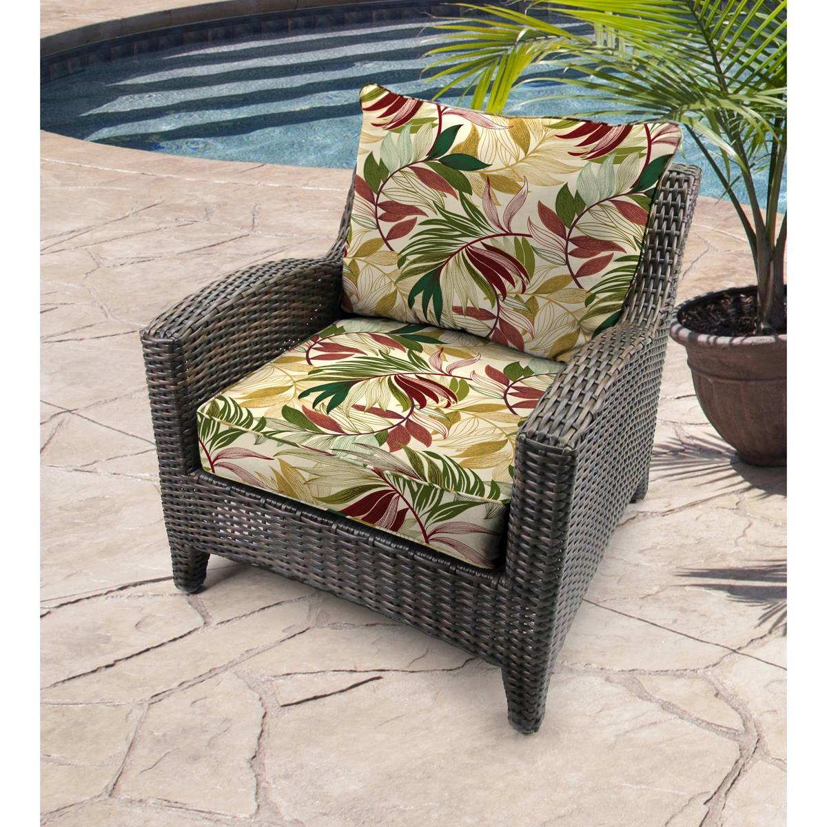 Refresh your outdoor seating arrangement with the Jordan Manufacturing comfort and style of this 2-piece Outdoor Deep-Seat Chair Cushion Set. Covered with a soft fabric and filled with high-density foam and fiber material, the deep-seat chair and back cushion are specially designed to keep you lounging comfortably on your favorite patio chair. Bringing a stylish look to help enhance your patio, deck, or pool area.Recommend bringing inside during inclement weather to prevent cushion damage. Periodic spot cleaning with a mild soap/warm water solution and non-abrasive cloth. Do not use bleach on this item. If item does become wet, stand on side, allow water to run out, and completely air dry before putting away for the seasonThis item requires oversize delivery. Please refer to the Order Summary in the Shipping step at checkout for delivery charge.