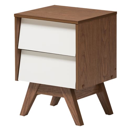 Description This Baxton Studio Hildon 2 drawer storage nightstand adds the perfect touch to any room. The slanted design of the drawers gives it extra character and individual...