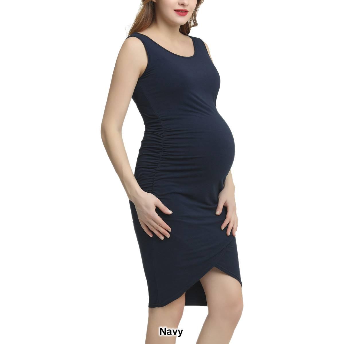 This classic Womens Glow & Grow® maternity tank dress is given a subtle yet chic update. Featuring a tulip hemline that adds a little bit of fashionable flare and is ruched along the side seam to flatter a growing bump.