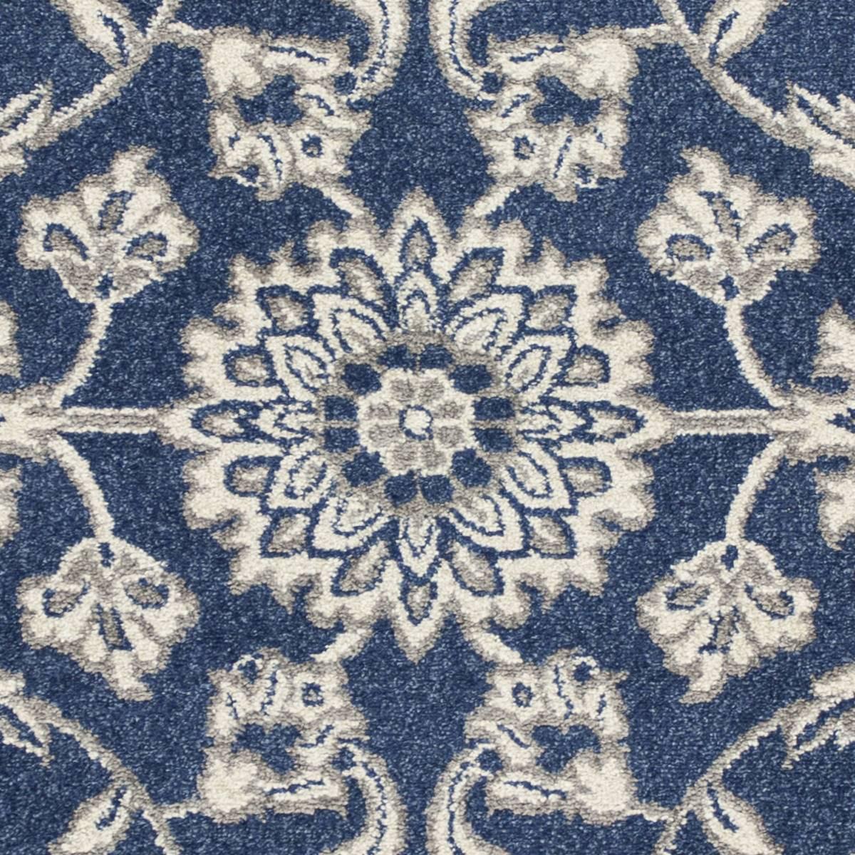 Bring a touch of elegance to any living space with the neutral colors and floral design on a blue ground of this KAS Lucia Denim Verona rug that offers a sophisticated yet trendy look. When cleaning, vacuum with a floor attachment, spot clean with a mild detergent and blot spills immediately for a lasting look. If used outdoors can be hosed off and dried on a flat surface.
