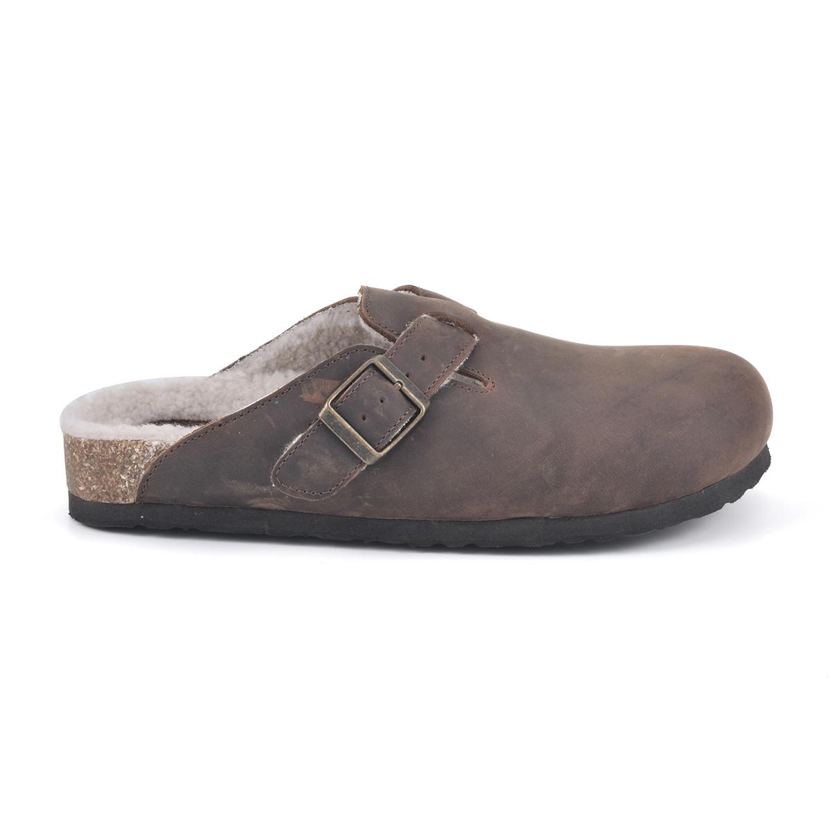 Get cozy in these Womens White Mountain Bari Footbeds™ clogs. The clogs have a soft leather upper and a synthetic outsole. They feature a roomy round toe, a molded cork comfort footbed with a faux shearling lining that keeps your feet toasty all season long. They are great for both going out and staying in.