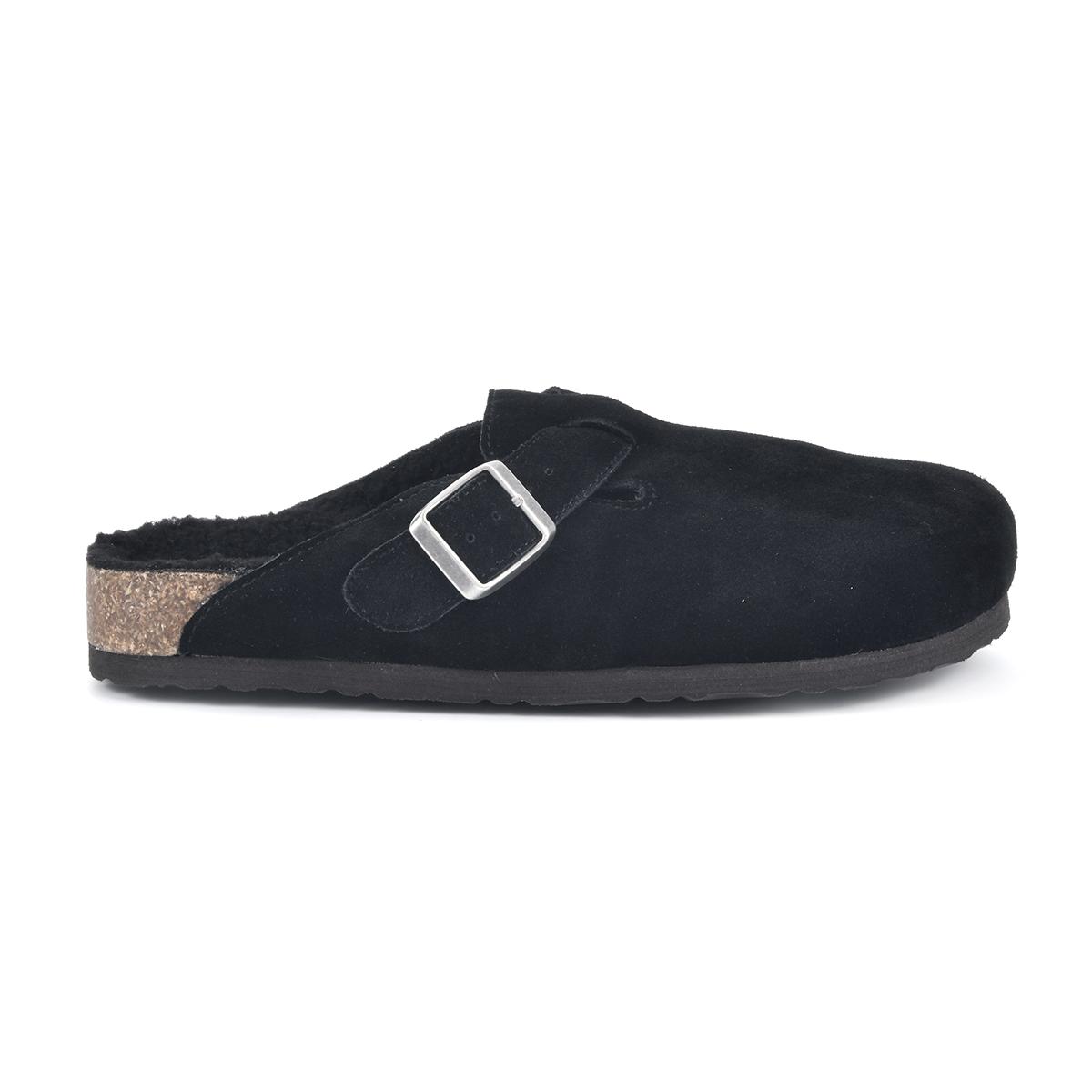 Get cozy in these Womens White Mountain Bari Footbeds™ clogs. The clogs have a soft suede upper and a synthetic outsole. They feature a roomy round toe, a molded cork comfort footbed with a faux shearling lining that keeps your feet toasty all season long. Great for both going out and staying in.