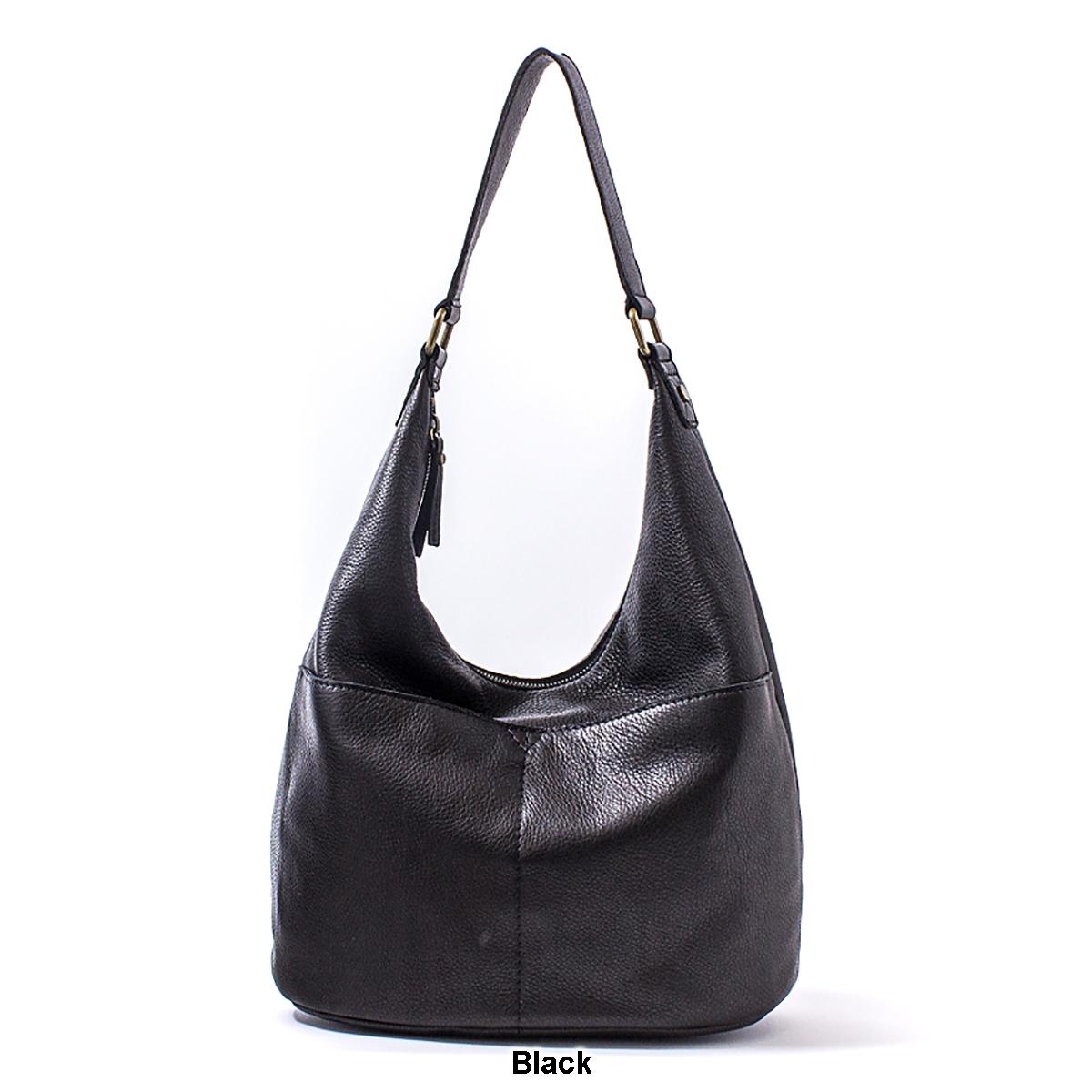 Description Top main zipper closureExterior: 2 front slip pocketsInterior: Slip pocket, Zip pocketPattern: Solid Handle Drop: 6 " Material: Leather Product Height: 14 1/2"...