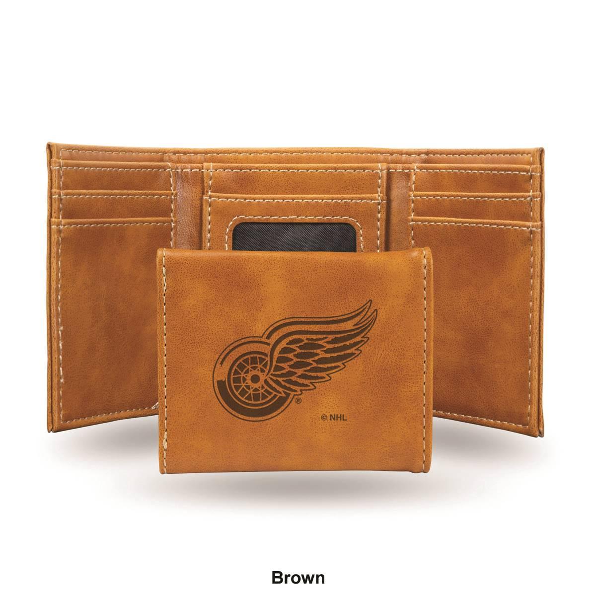 Description Carry a part of your favorite team with you and simultaneously keep your money safe with this Mens NHL Detroit Red Wings trifold wallet. Made of faux leather, the...