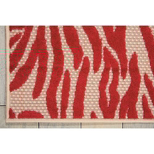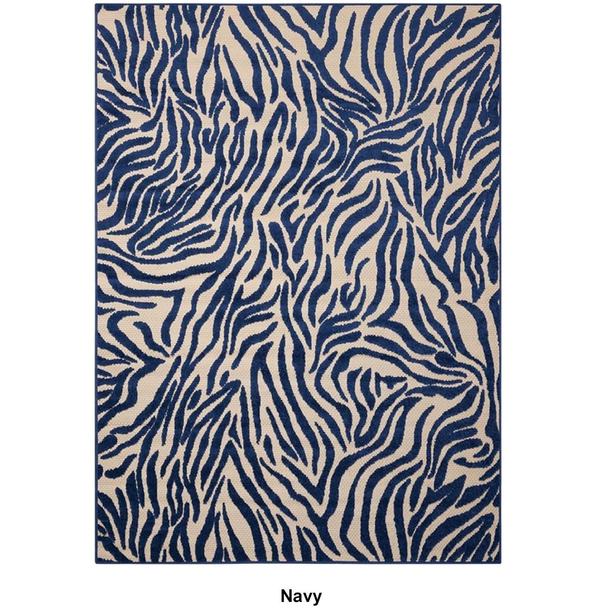 This Nourison Aloha rectangle animal print area rug features a woven, practical rug that is perfect for high-traffic areas. The rug is inviting with its animal print pattern with a classic contemporary design. The classic display of color palettes and textures will bring sophistication to the inside or outside of your home. 100% Polypropylene.