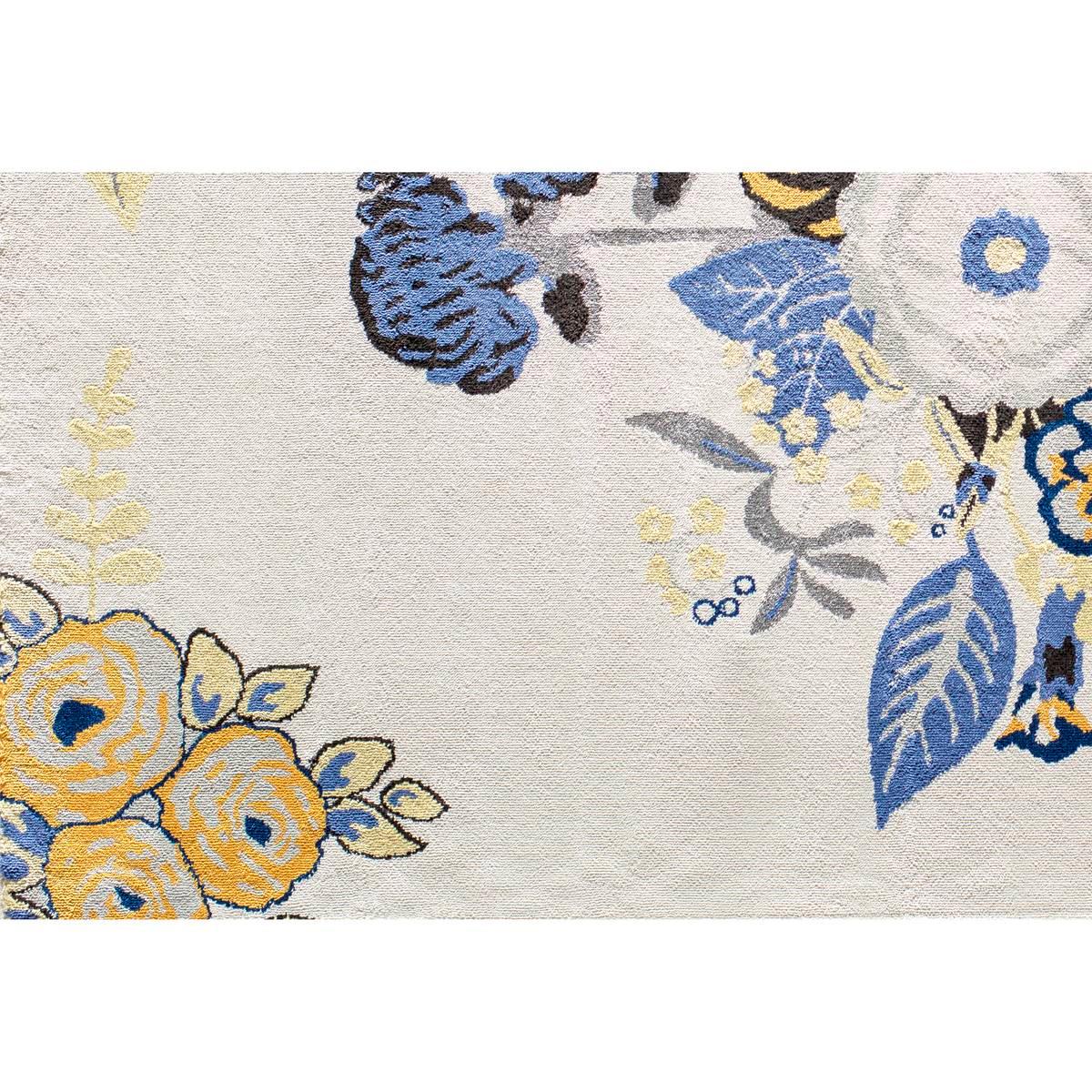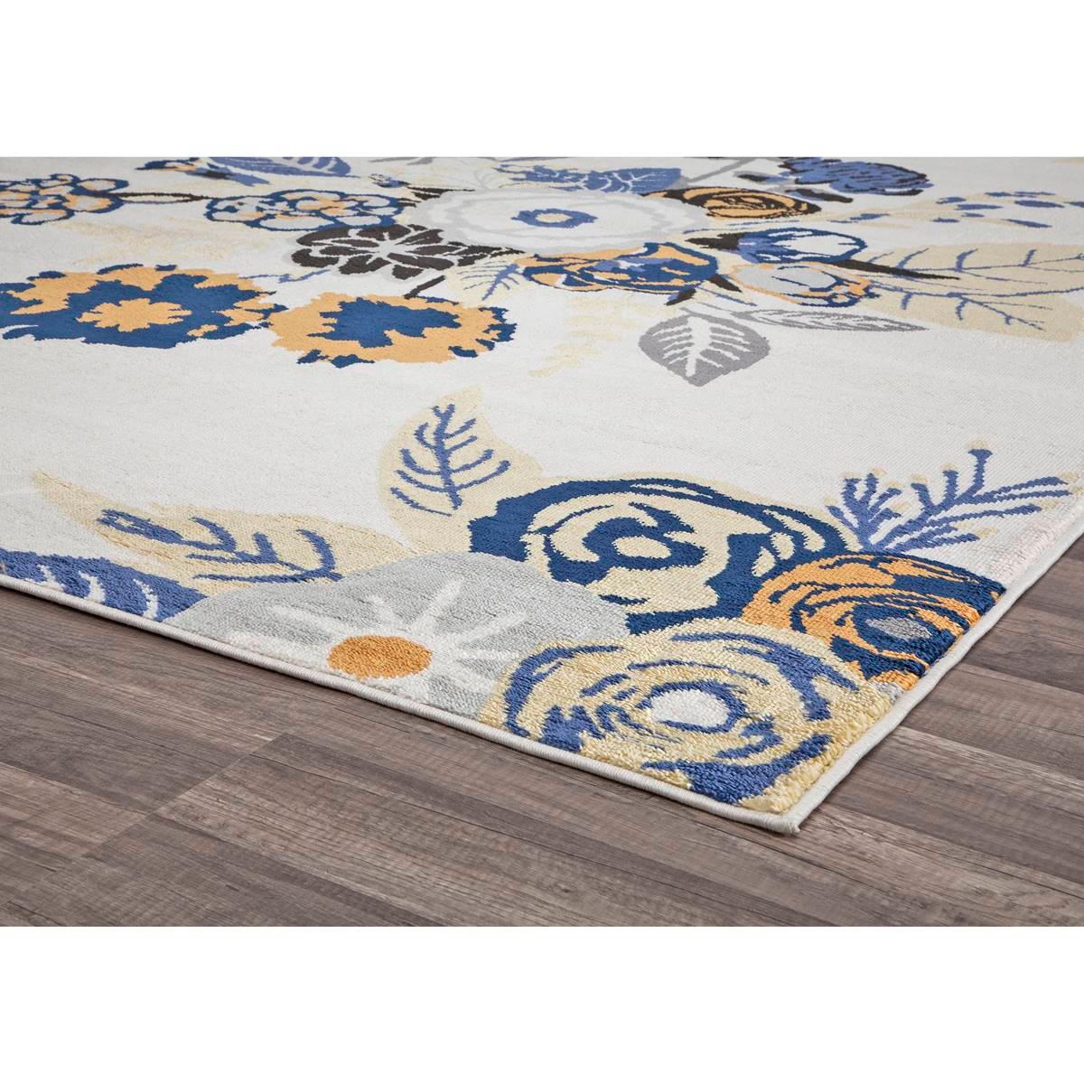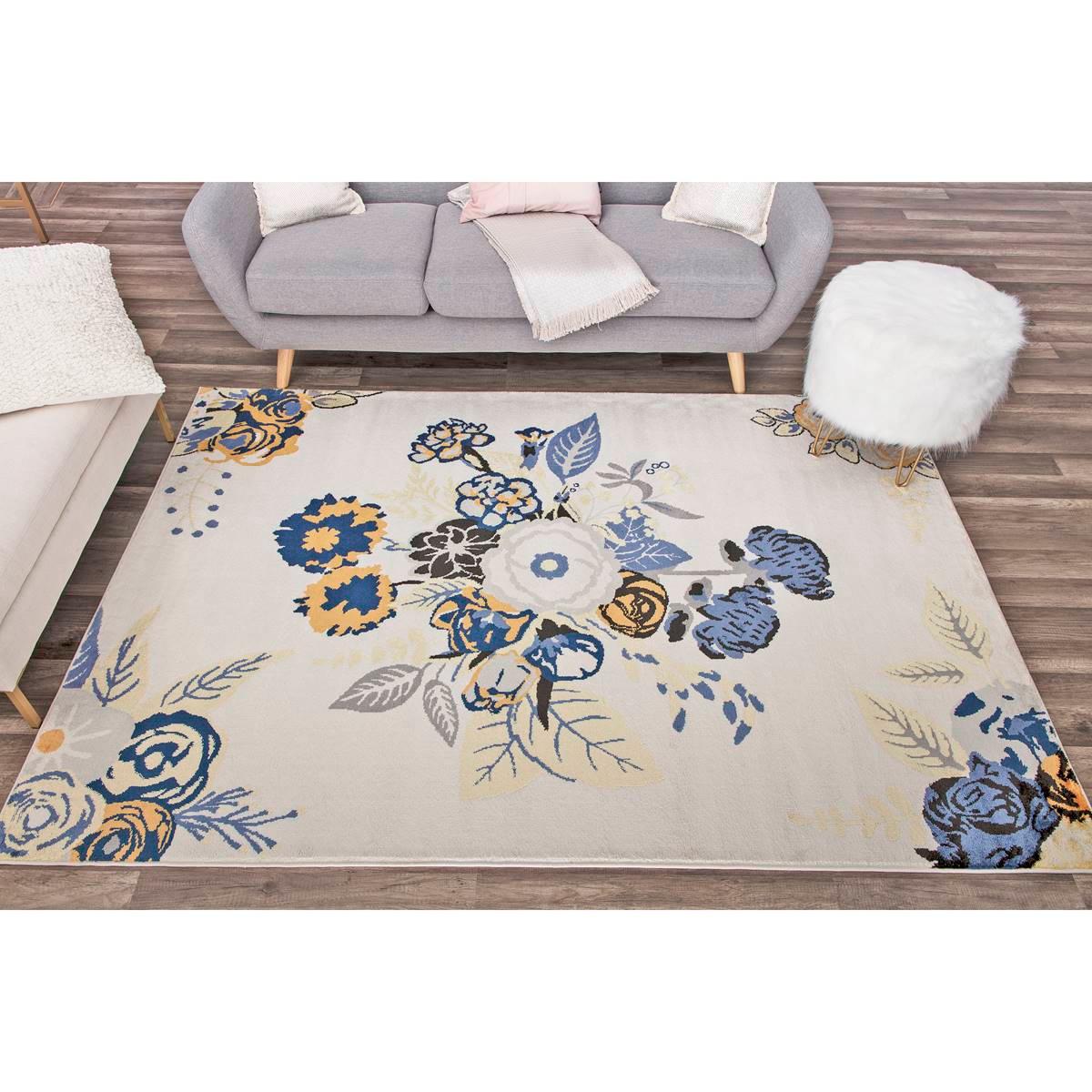 This Rugs America™ Valentina rose garden ivory floral transitional area rug is constructed with a shiny, soft touch. The motif boasts a lush floral centerpiece in blues, orange, and more neutral shades. Made in Turkey.
