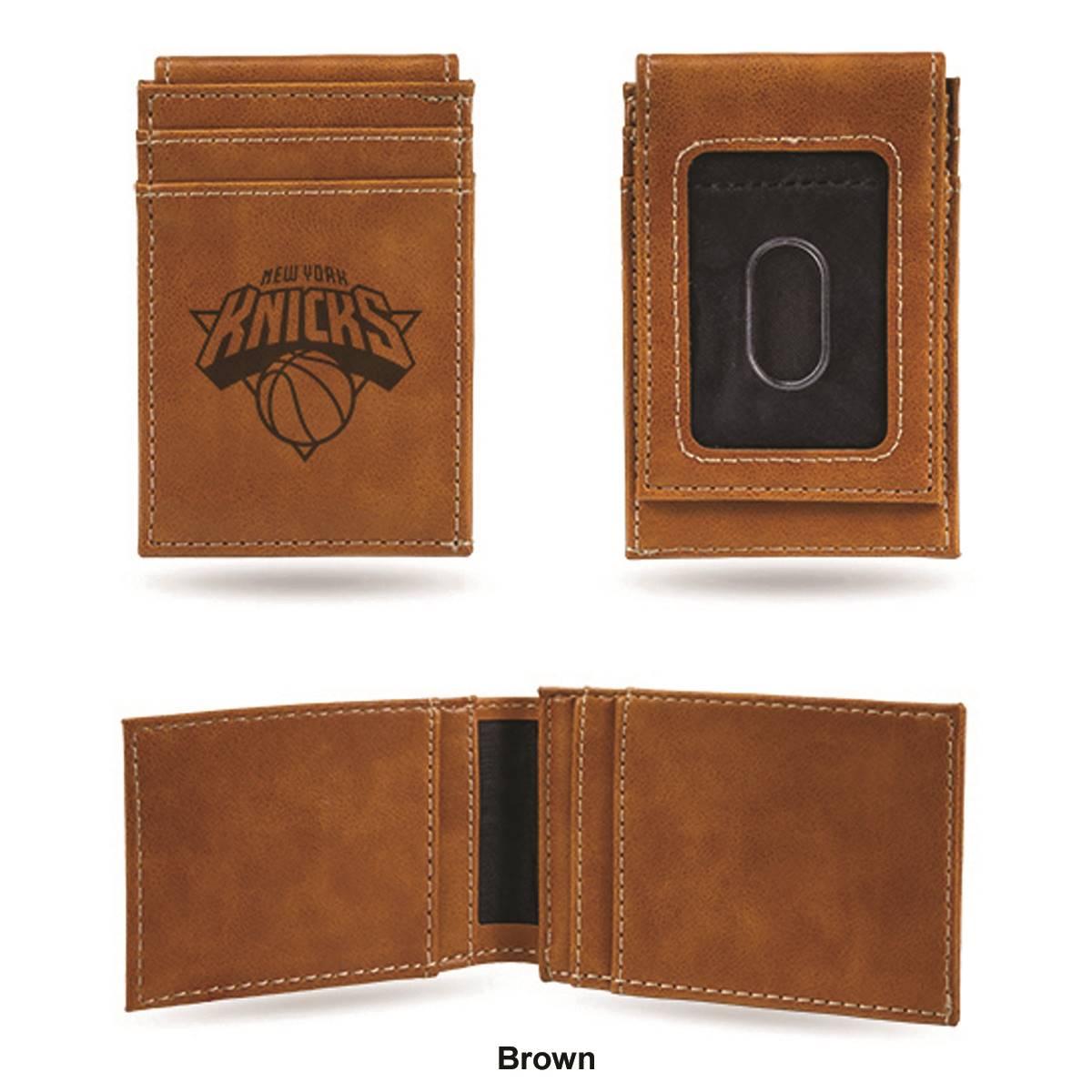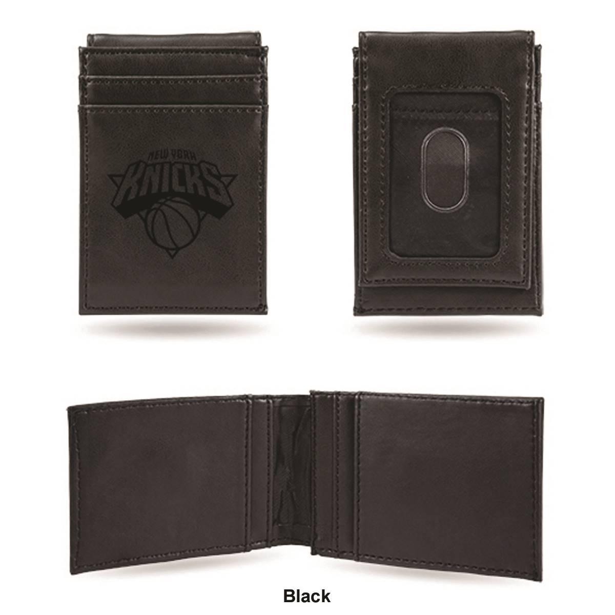 Description Put your money where your fandom is with this cool Mens NBA New York Knicks front pocket wallet. Made from faux leather, the 4-inch long and 2.75-inch wide wallet has...