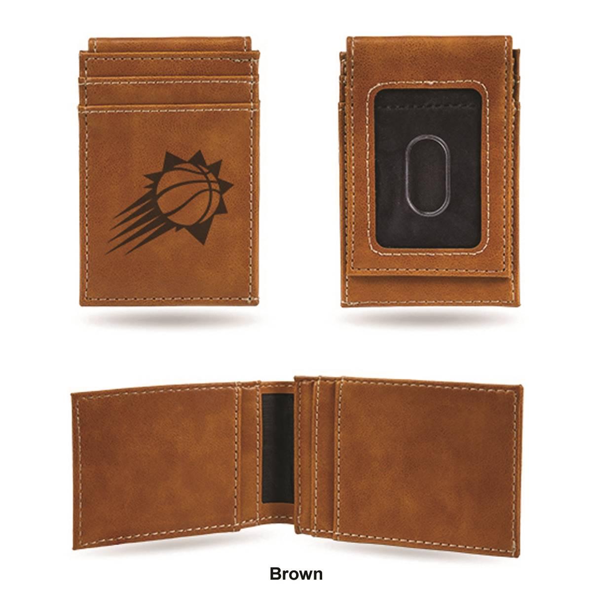 Put your money where your fandom is with this cool Mens NBA Phoenix Suns front pocket wallet. Made from faux leather, the 4-inch long and 2.75-inch wide wallet has a Phoenix Suns embossed logo with an ID window on the front and card slots. Show your love for your favorite team with this front pocket wallet.