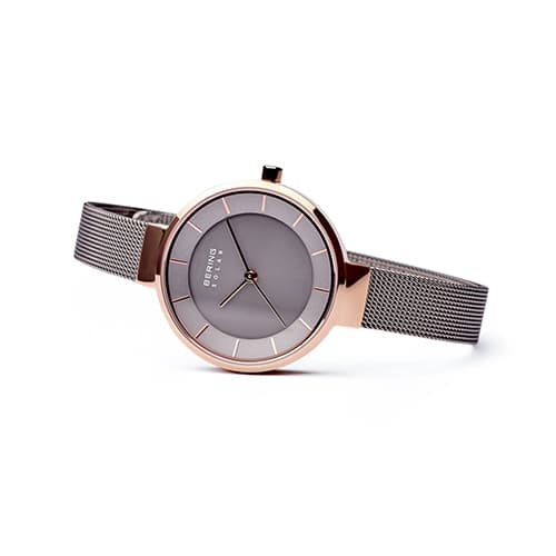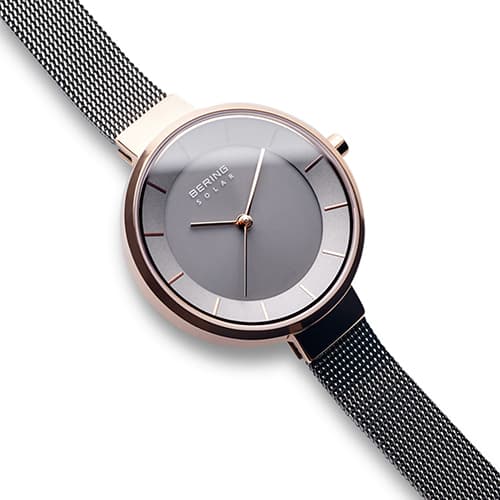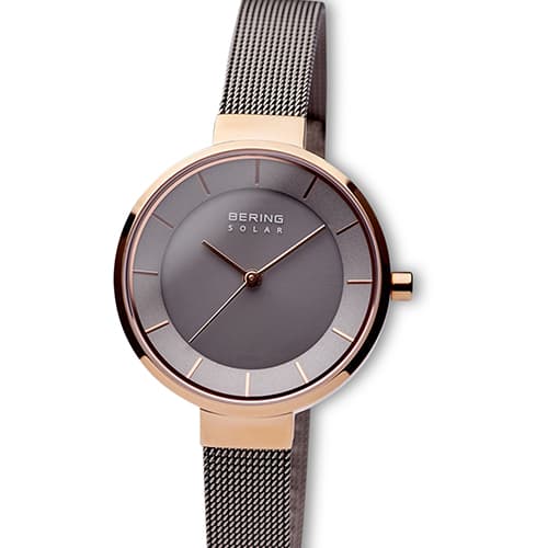 Womens BERING Solar Slim Grey & Rose Gold Watch - 14631-369
