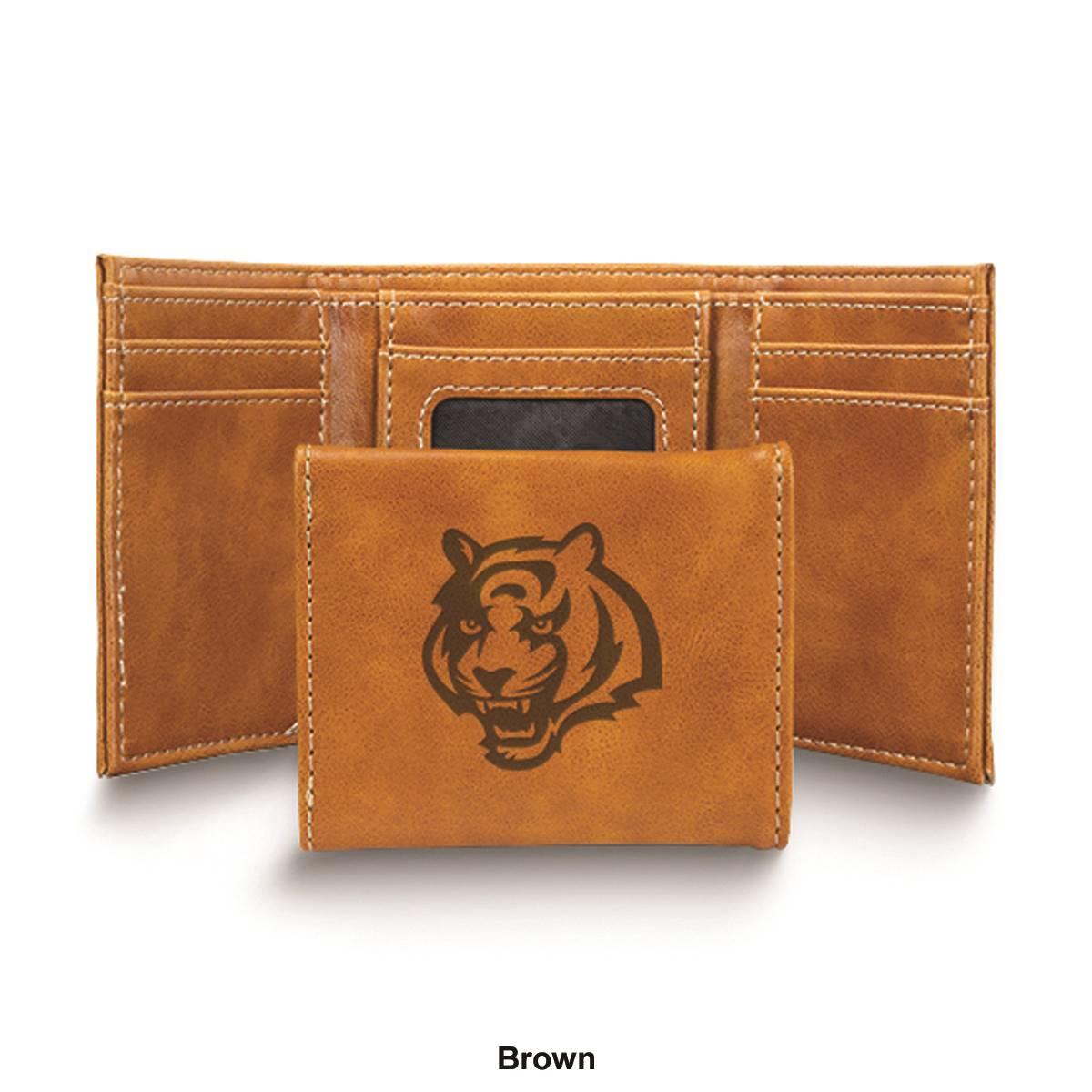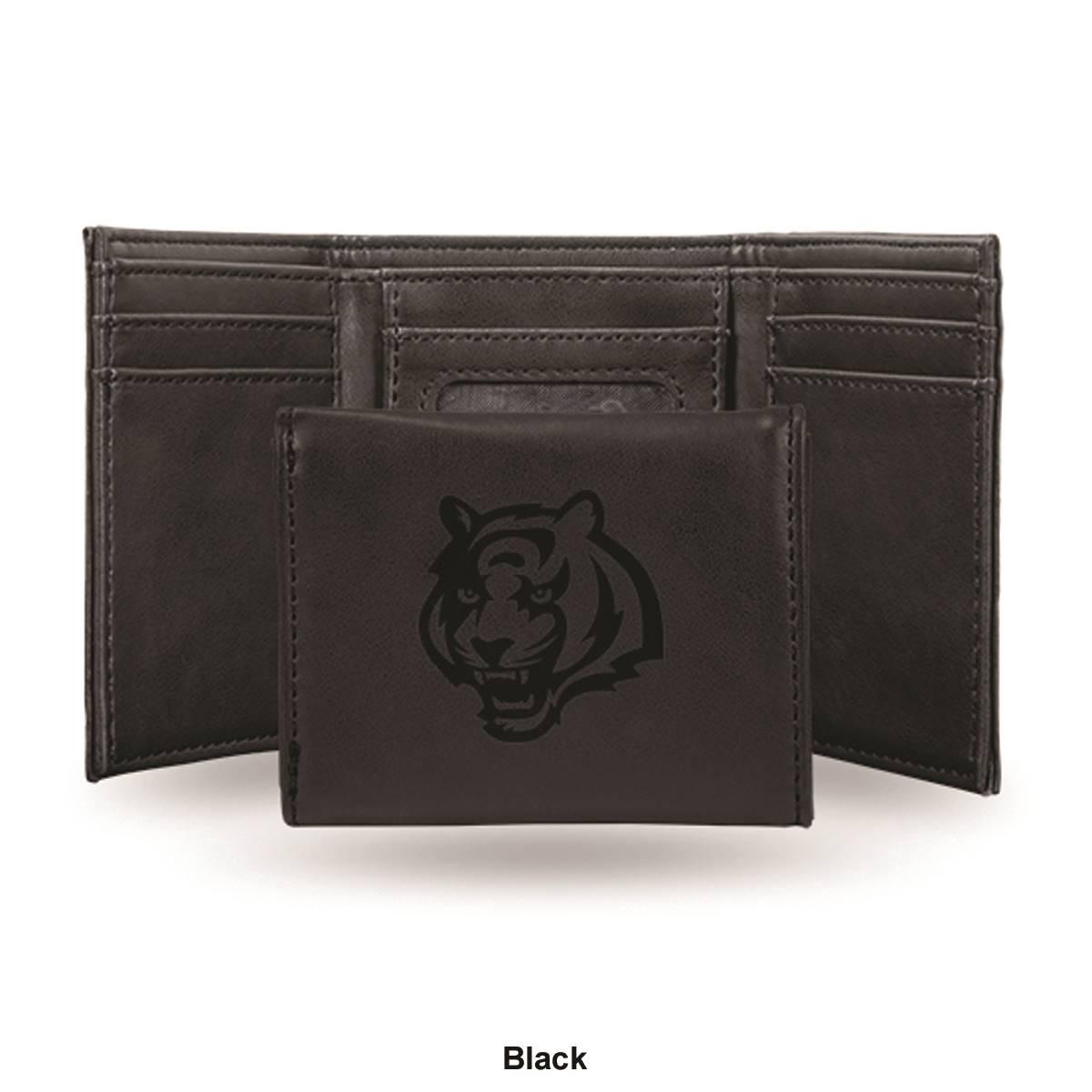 Carry a part of your favorite team with you and simultaneously keep your money safe with this Mens NFL Cincinnati Bengals trifold wallet. Made of faux leather, the 4-inch long and 3.25-inch wide wallet features a Cincinnati Bengals embossed logo, card slots, and an ID window for a complete look.