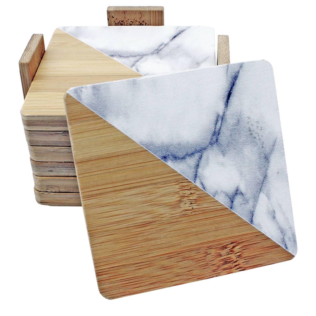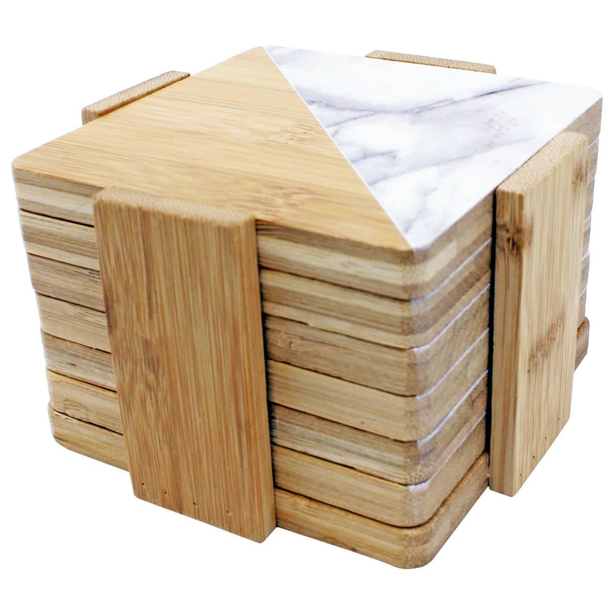 Description Protect your furniture from water marks with this BergHOFF bamboo two-tone 8pc. coaster set. These bamboo coasters create a contemporary design, but would also...