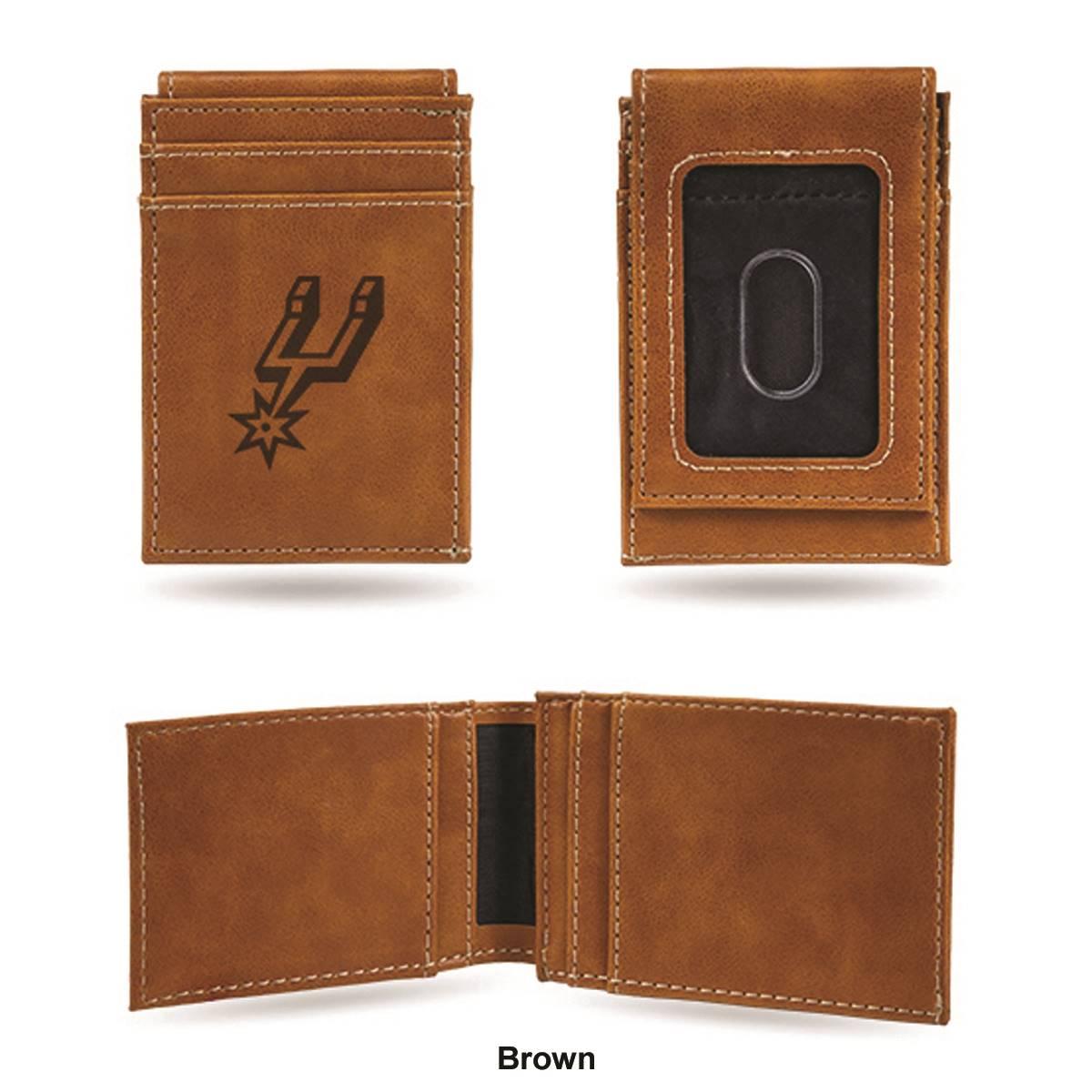 Description Put your money where your fandom is with this cool Mens NBA San Antonio Spurs front pocket wallet. Made from faux leather, the 4-inch long and 2.75-inch wide wallet...
