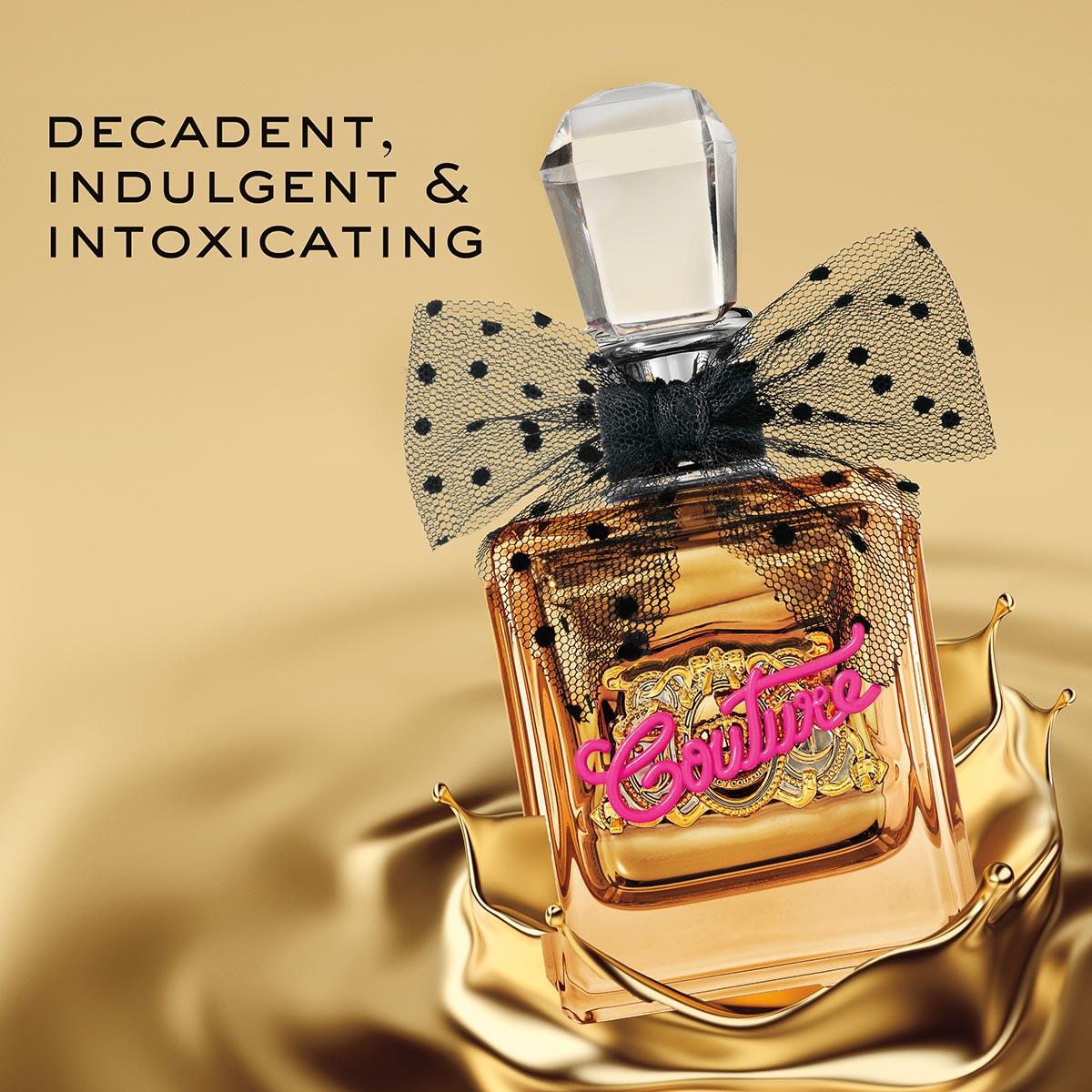 Description Juicy Couture Viva La Juicy Gold Couture Eau de Parfum perfume indulges the senses with luscious wild berries, a kiss of honeysuckle and a luxurious elixir of golden...