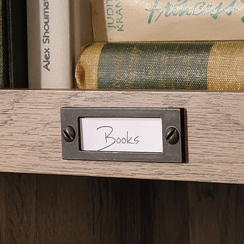 Description Sauder Barrister Lane tall bookcase features a cubby hole storage for books, binders, framed photos, collectibles, and more. Accommodates ID label tags. Salt Oak...