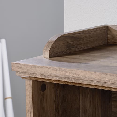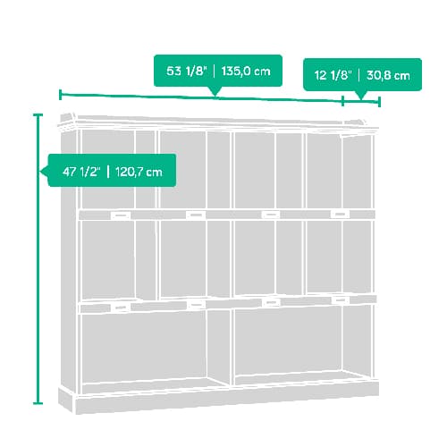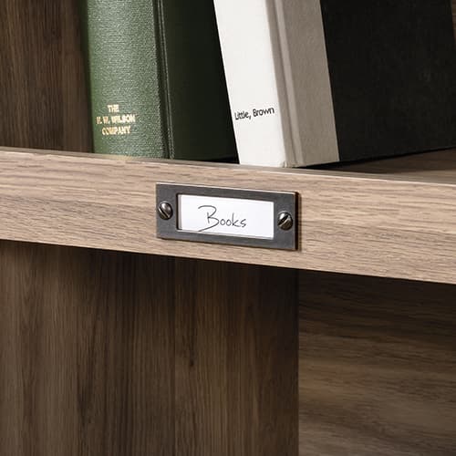 Sauder Barrister Lane bookcase features cubby hole storage for books, binders, framed photos, collectibles, and more. Accommodates ID label tags. Top shelf with gallery display. Salt Oak finish. Dimensions: 47 1/2"H x 53 1/8"W x 12 1/8"D. Please measure to make sure it will fit your space. Limited Manufacturer’s Warranty.