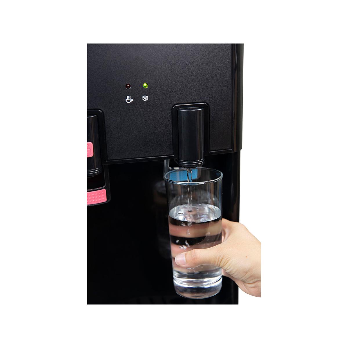 This Igloo top loader water dispenser gives you ice-cold and piping-hot water in just seconds. It allows you to load 3 or 5 gallon bottles (not included) and has a child safety lock for the hot button so there are no accidents. The water dispenser is equipped with a removable drip tray, allowing for a quick and easy clean up.