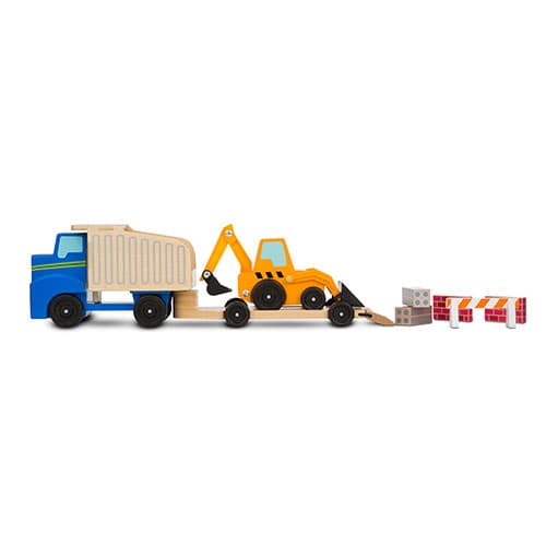 Description The Melissa & Doug® dump truck and loader features an eight piece set including four wooden construction pieces, a wooden road barrier, a heavy duty wooden dump...
