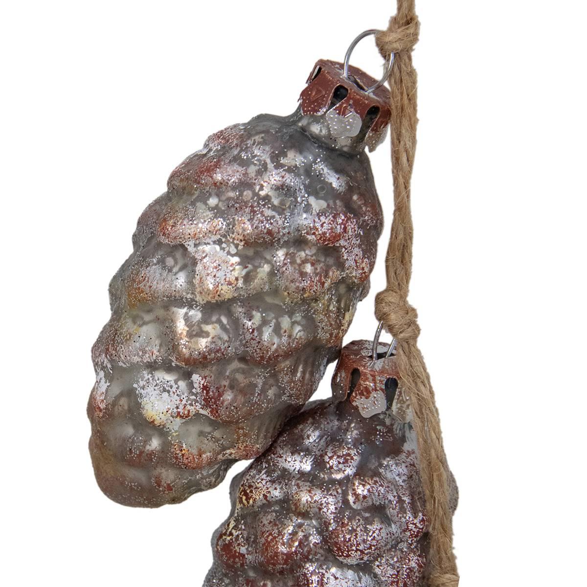 This ornament from Northlight Seasonal will be sure to add a retro and industrial style to your holiday décor with its mercury glass. It features three pine cones in a distressed finish with glittering on them. Great for use on trees, wreaths, or as a decoration in a centerpiece.