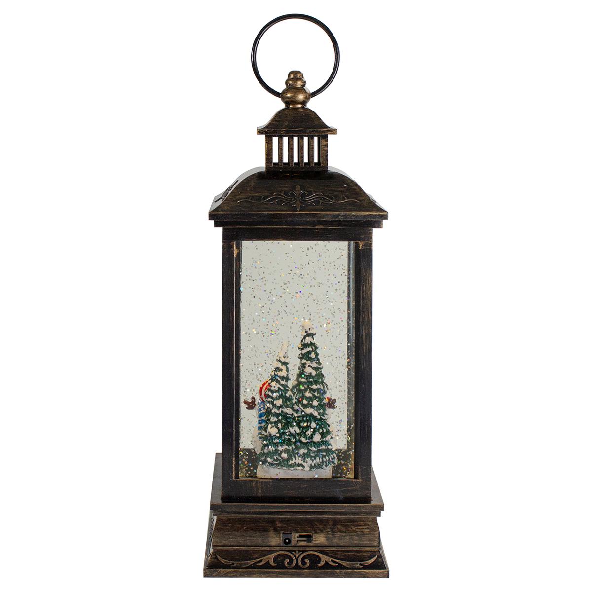 Add this Northlight Seasonal fun and dazzling snow globe lantern to your holiday décor this year! From the swirling glitter and cheerful snowmen, this snow lantern is sure to be a holiday favorite for years to come. Perfect to place on tabletop and mantles. LED lighting and swirling glitter. Requires 3-AA batteries, not included.