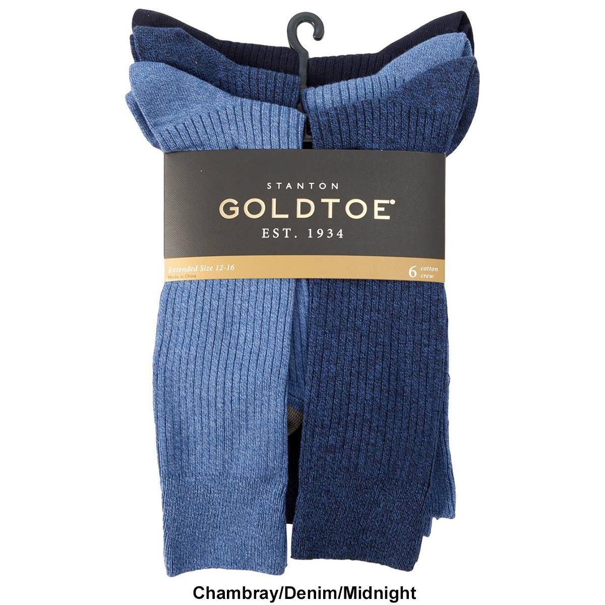 Stay comfortable all day with the help of these Mens Gold Toe® 6-pack Stanton extended size crew socks. These crew length socks feature a comfortable reinforced toe seam and a soft fabric knitted with spandex for a perfect fit.