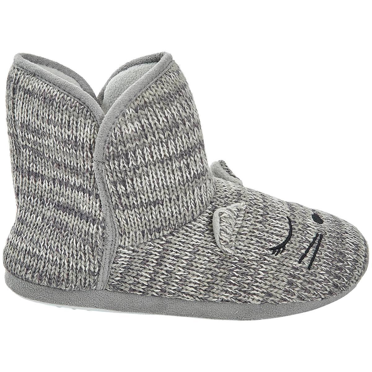 Lounge around in these cute and comfortable Womens Capelli New York knit sleeping cat bootie slippers. These adorable slippers include embroidery, cat ears, and cozy fleece lining.