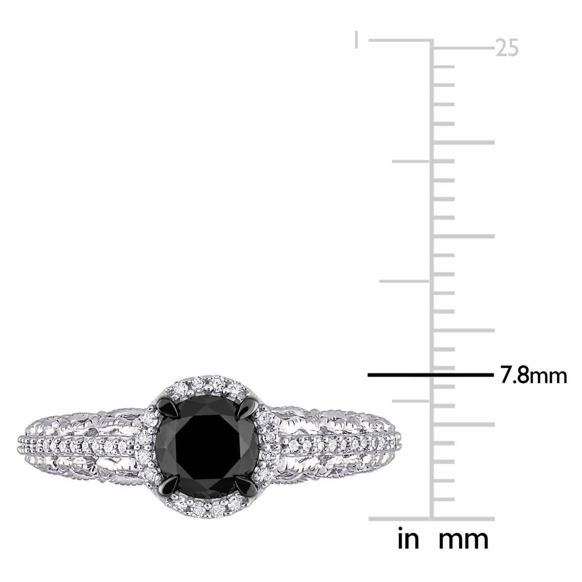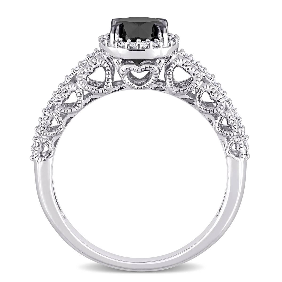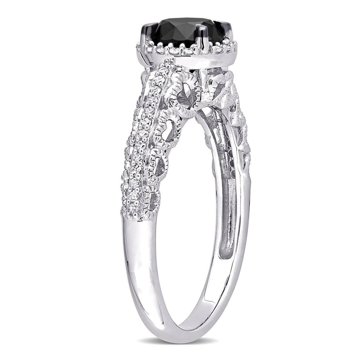 This Radiant Rainbow™ 10kt. White Gold Diamond Fashion Ring is crafted in sparkling black rhodium plating. This elegant wedding ring features a round-cut black diamond center stone surrounded by a halo of round-cut white diamonds.