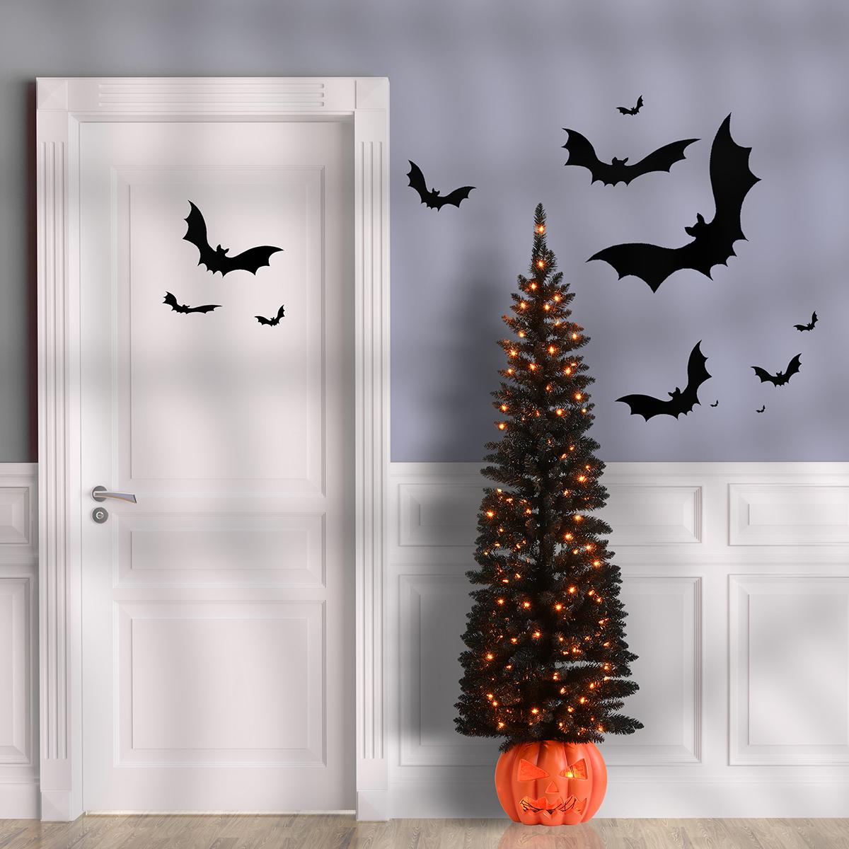 Description This National Tree 6-feet Halloween Half Tree with Orange Lights features a flat backside designed for display against a wall or where floor space is limited. The...