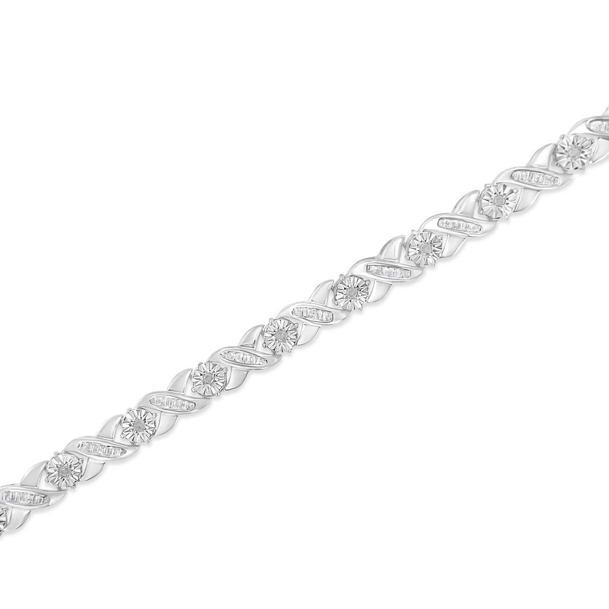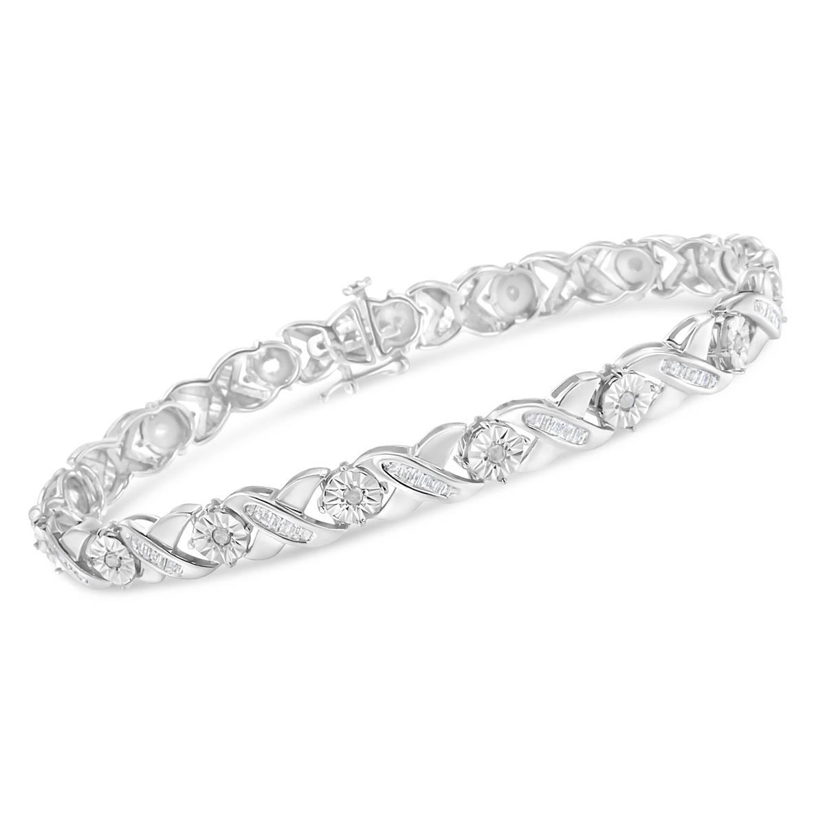 This Diamond Classics™ sterling silver 1ctw. diamond x-link bracelet will make a beautiful gift for her. Its design includes 15 round diamonds in a miracle setting and 105 baguette diamonds in a channel setting that will make the perfect accessory for any outfit.