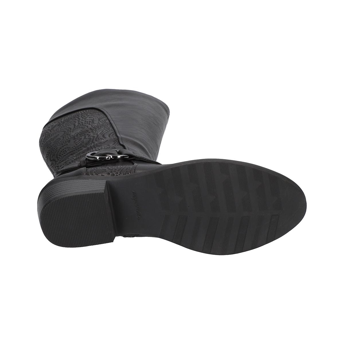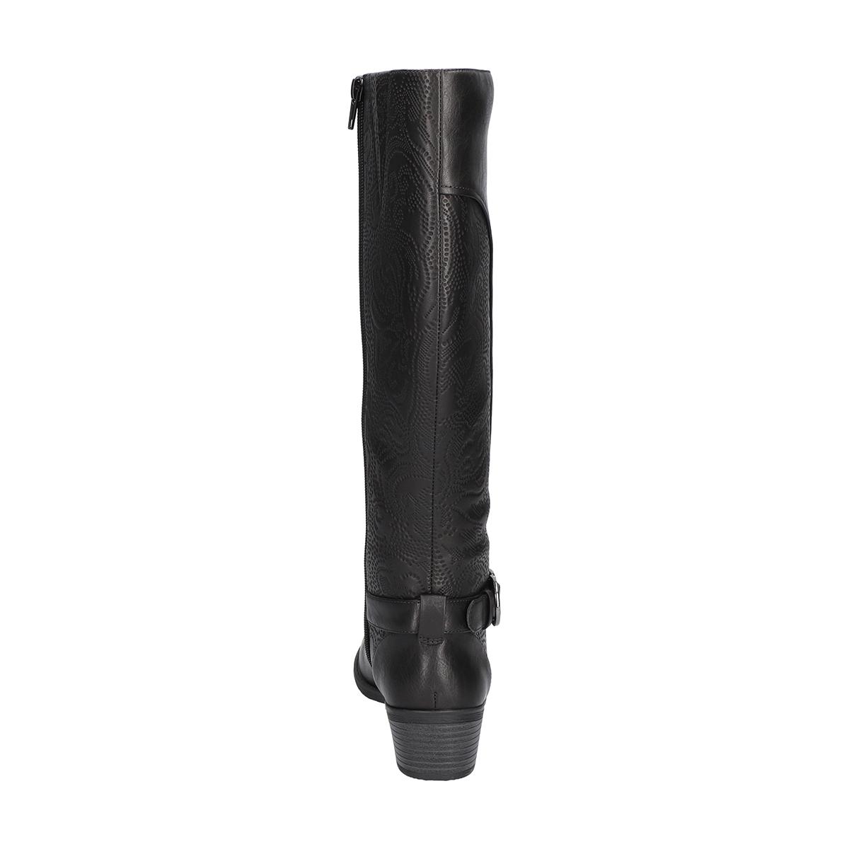 These Womens Easy Street Luella tall boots make a statement with the unique combination of embossed material and ornamentation. The underslung low heel and buckled straps add a decorative element to this stylish boot.
