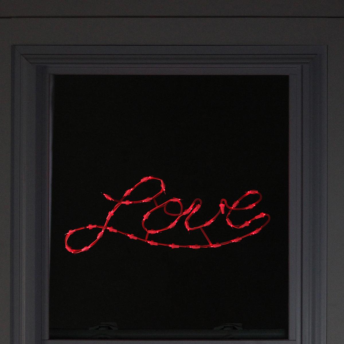 Description Shine some love to the world this holiday season with this Northlight Seasonal lighted red love script Valentine´s Day window silhouette. It’s the perfect way...