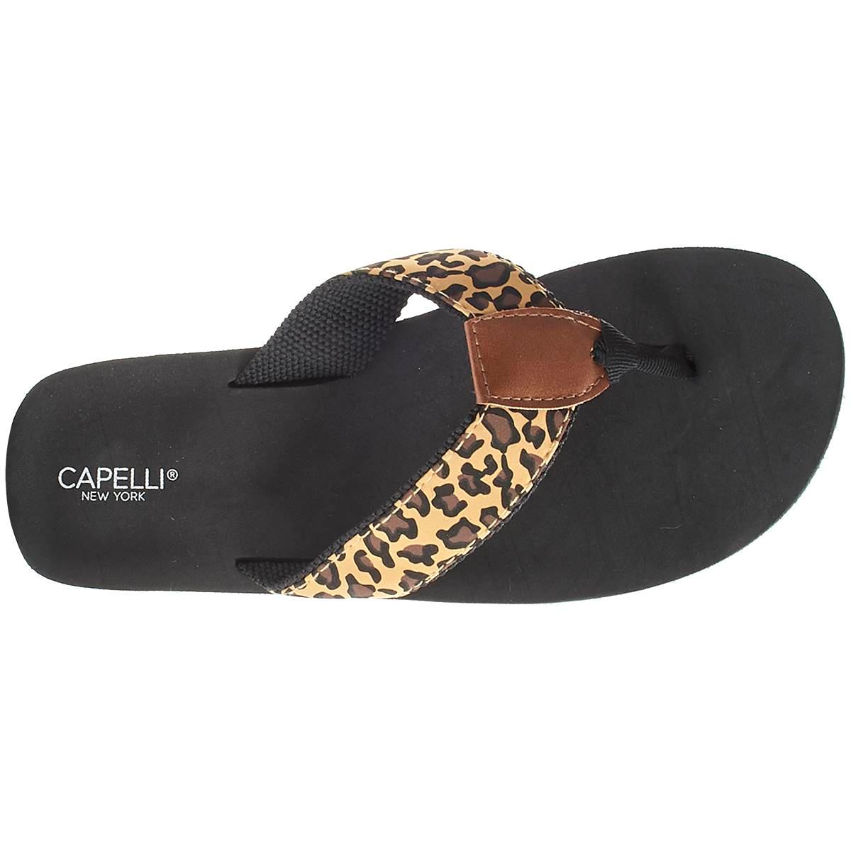 Description Look fierce in the Womens Capelli New York leopard print flip flops, perfect for slipping on and adding to your everyday style! Care: Spot Clean Material: Man Made...