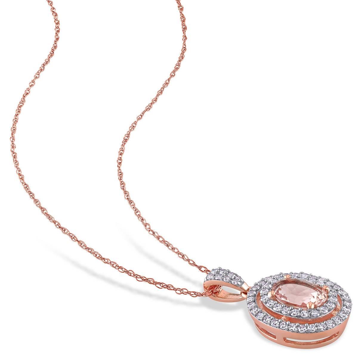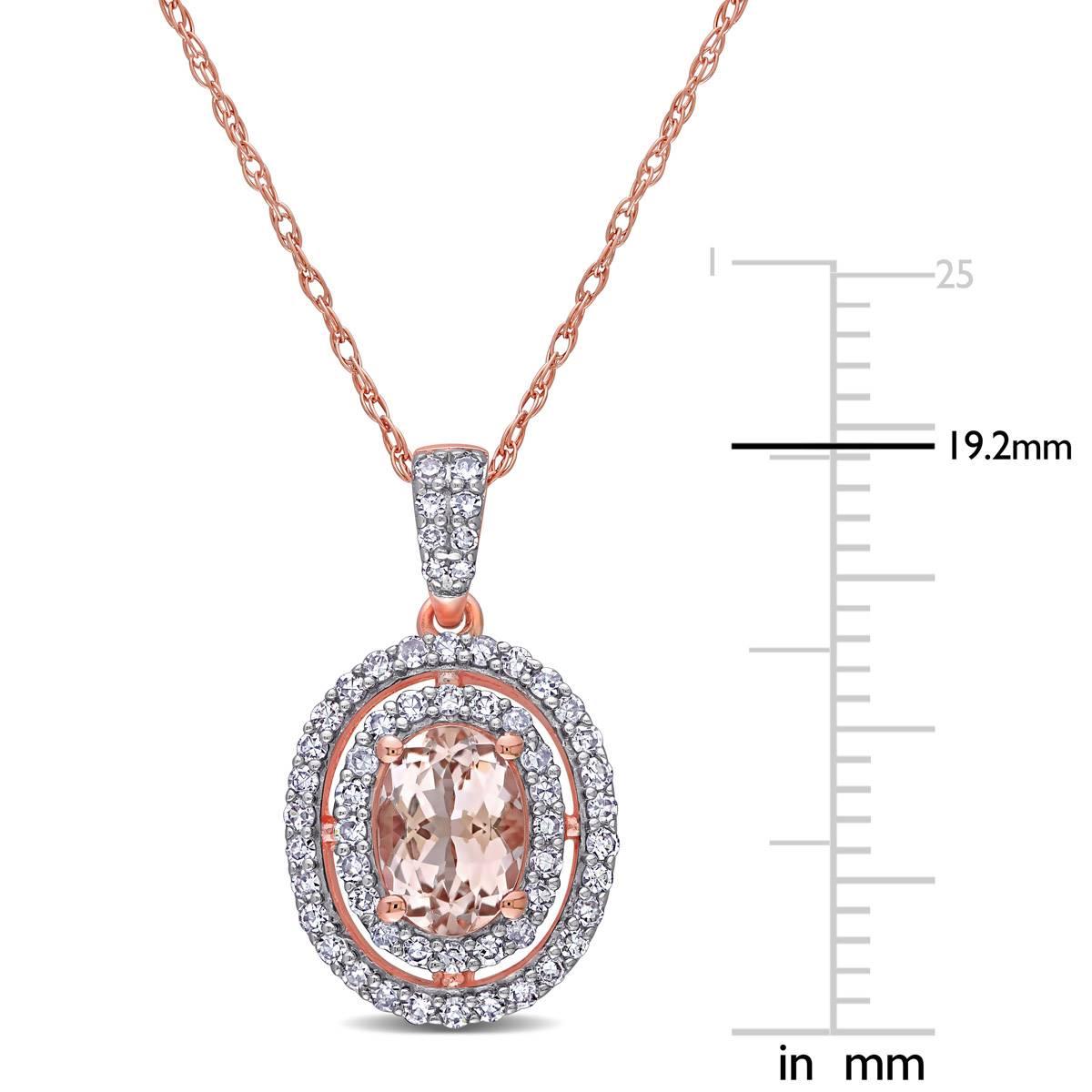 Description Dazzle her with this enchanting Gemstone Classics™ 14kt. Rose Gold Double Halo Pendant. This morganite and diamond necklace is suspended on a 17-inch long chain...