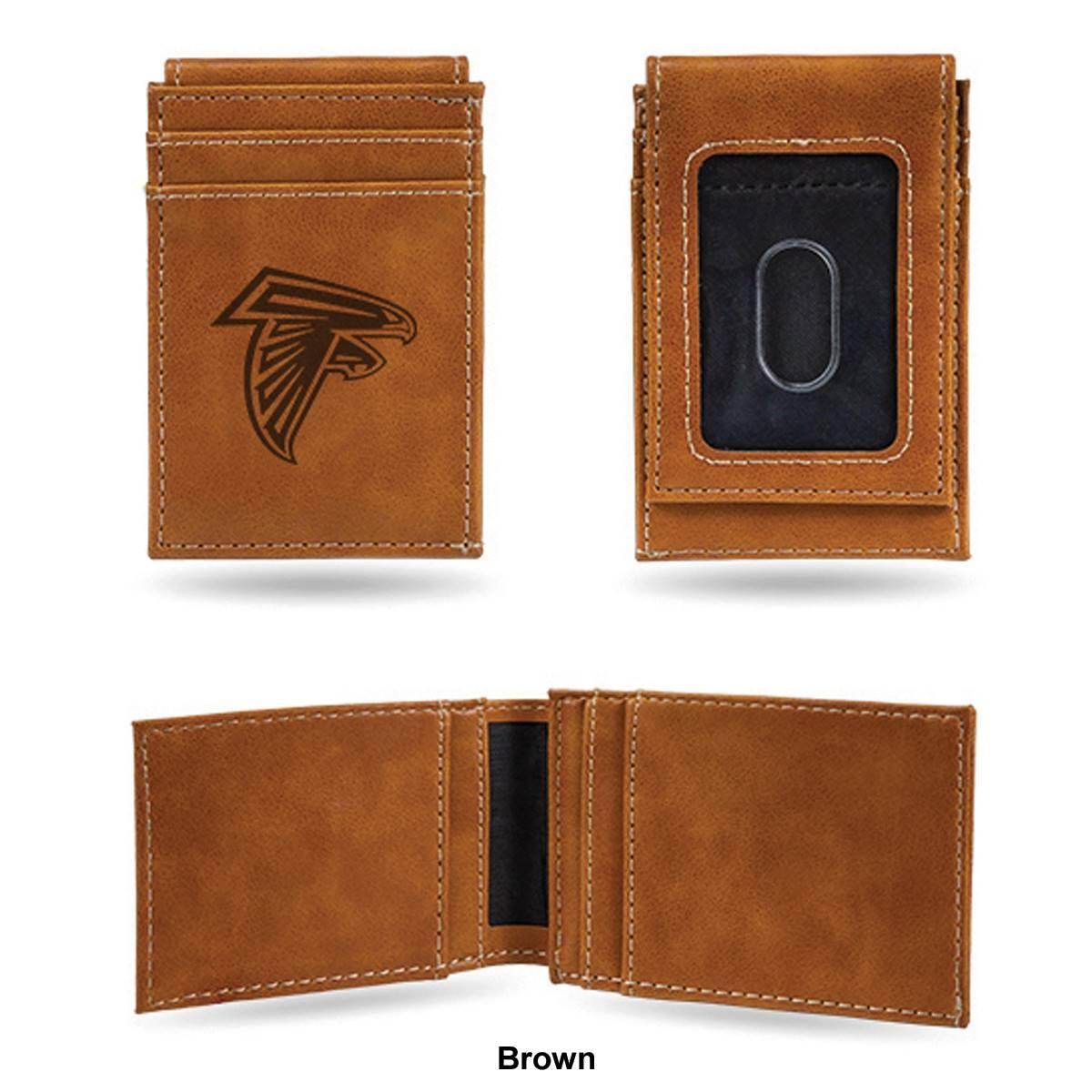 Description Put your money where your fandom is with this cool Mens NFL Atlanta Falcons front pocket wallet. Made from faux leather, the 4-inch long and 2.75-inch wide wallet has...