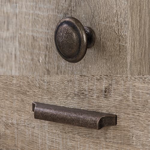 This South Shore Versa 2 door weathered oak armoire with drawers will be an attractive part of your home and jazz up your décor! This large, versatile piece will work well in any room in your home. It features 4 storage spaces with 3 adjustable shelves and 2 large drawers with metal handles in a black finish. Made with laminated Particleboard and Metal. Wipe with a soft dry cloth to clean. Dimensions: 63.62”H x 35.37”W x 16.87”D.