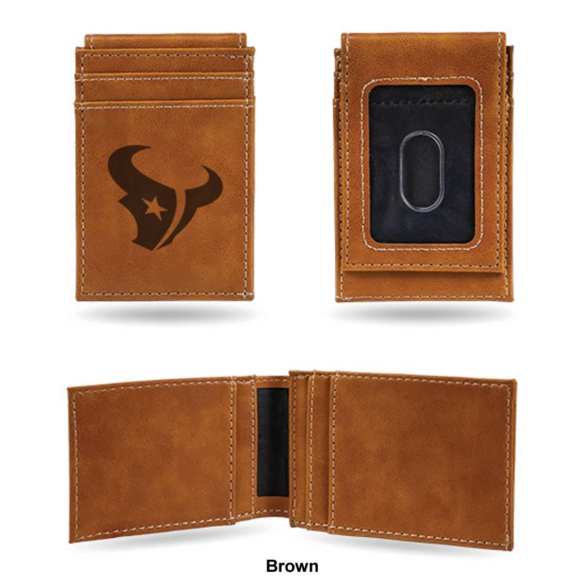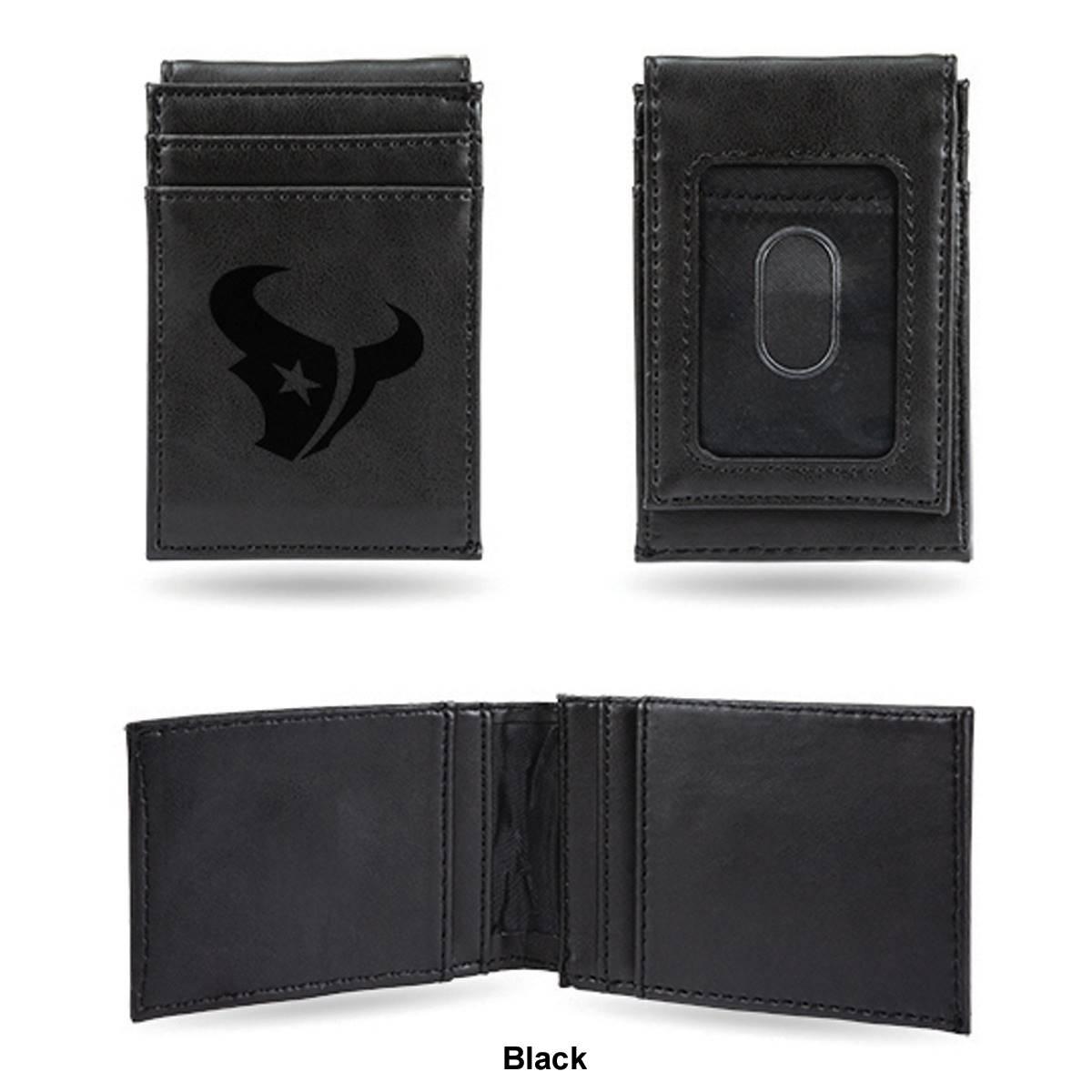 Put your money where your fandom is with this cool Mens NFL Houston Texans front pocket wallet. Made from faux leather, the 4-inch long and 2.75-inch wide wallet has a Houston Texans embossed logo with an ID window on the front and card slots. Show your love for your favorite team with this front pocket wallet.