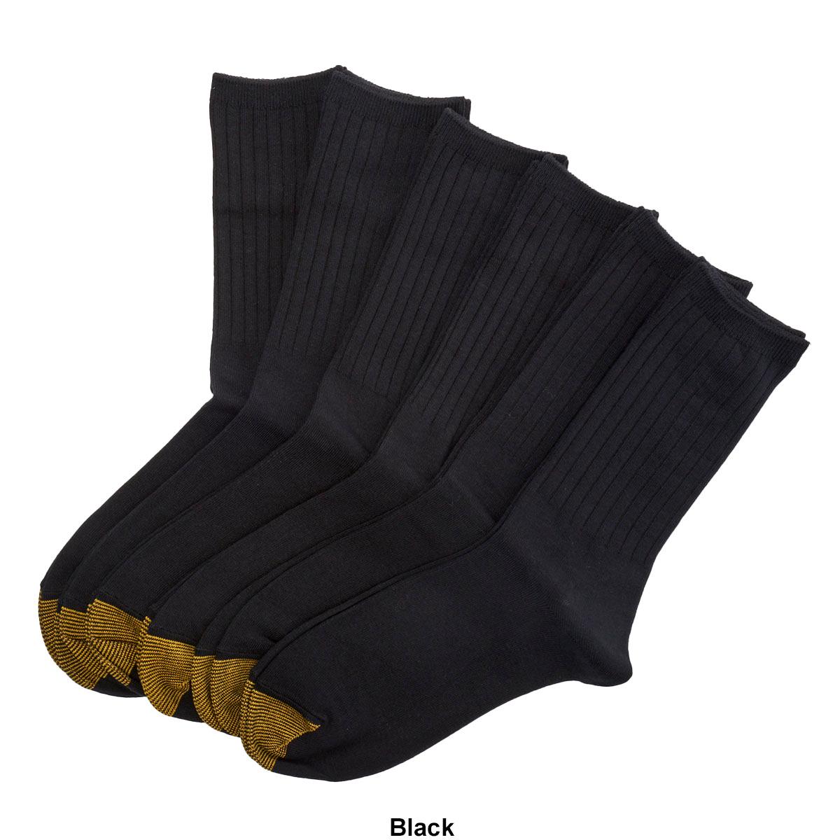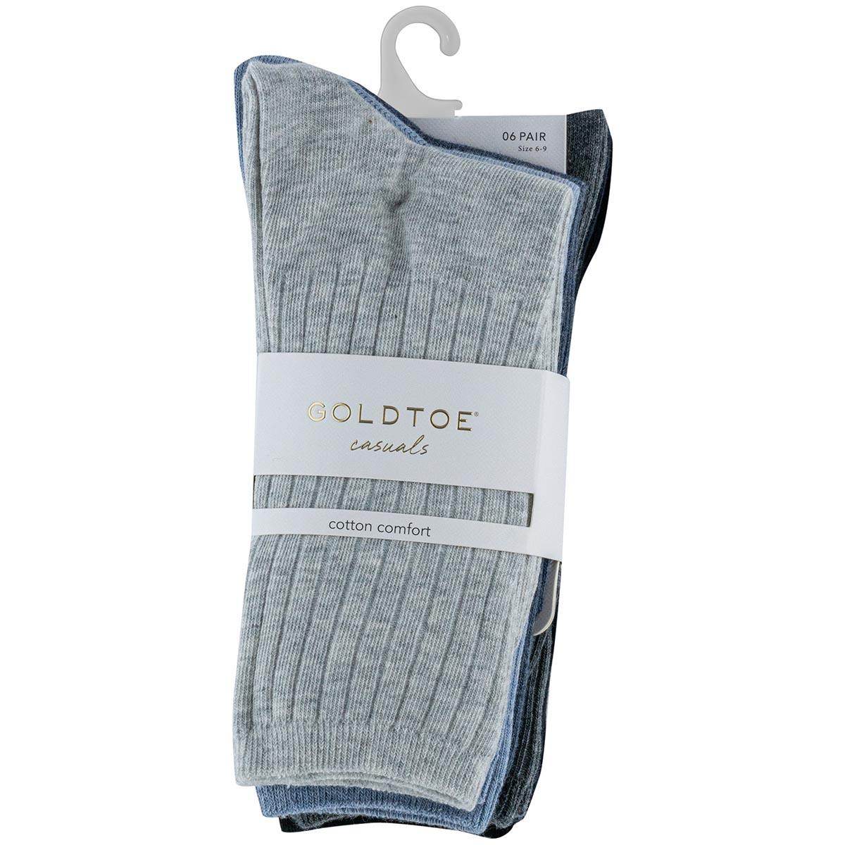 Description Womens Gold Toe® 6 pack extended rib crew socks. 73% Cotton, 24% Nylon, 3% Spandex. Machine wash. Tumble dry low. Only non-chlorine bleach. Fits shoe sizes 6-9...
