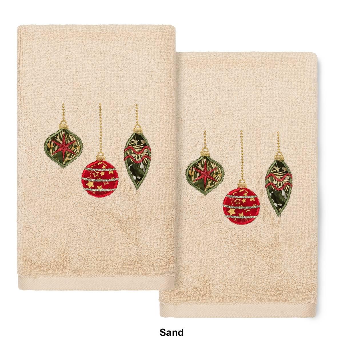 Description Bring a joyous Christmas spirit to your decorations with this Linum Home Textiles embroidered hand towel set for your guest bath. These Christmas Ornaments towels...