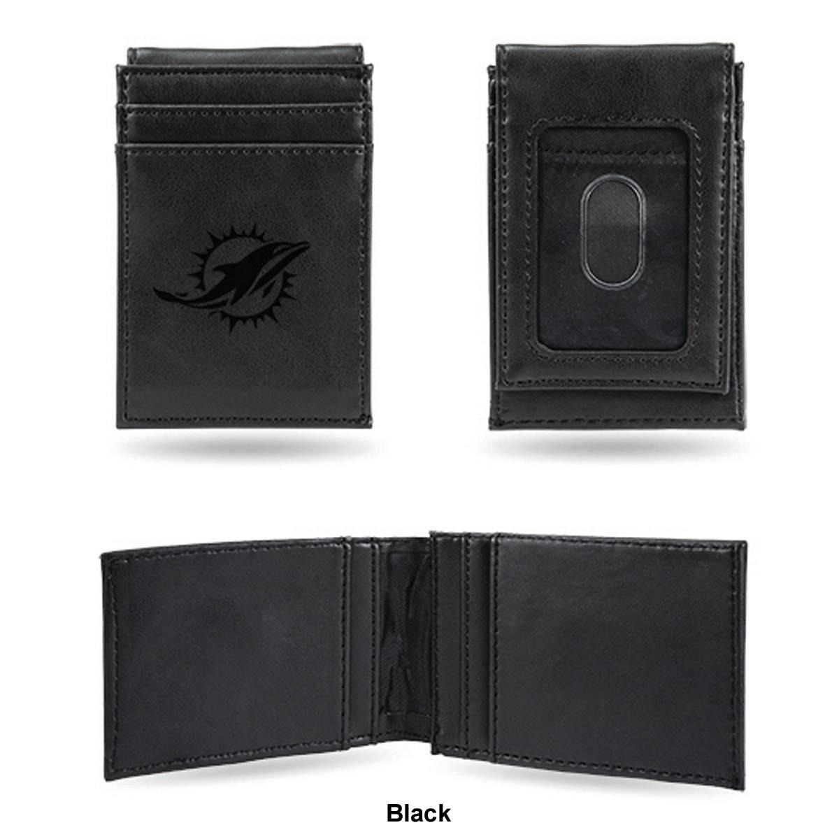 Put your money where your fandom is with this cool Mens NFL Miami Dolphins front pocket wallet. Made from faux leather, the 4-inch long and 2.75-inch wide wallet has a Miami Dolphins embossed logo with an ID window on the front and card slots. Show your love for your favorite team with this front pocket wallet.