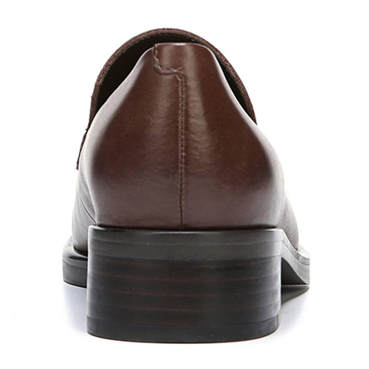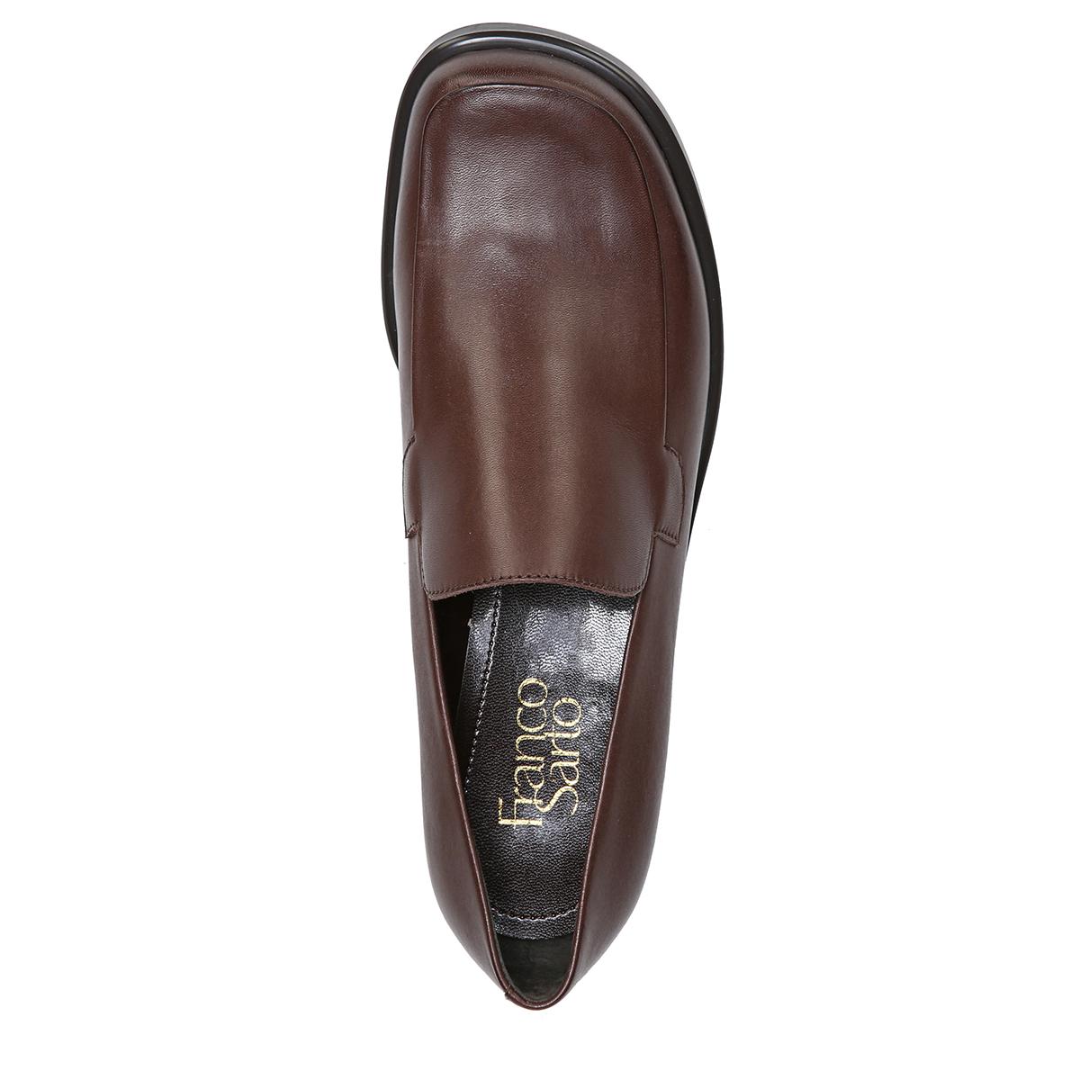 Strike the perfect balance of masculine and feminine style with these Womens Franco Sarto L-Bocca polished loafers. They have a leather upper and a synthetic outsole. The slip-on loafers feature a square toe, subtle stitching detail at the vamp, and a low stacked block heel for a sophisticated look.